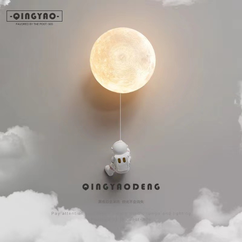 子供の部屋の創意宇宙飛行士の月の壁の明かりの北欧の個性の漫画の男の子の寝室のベッドの背景の壁の明かりの新型