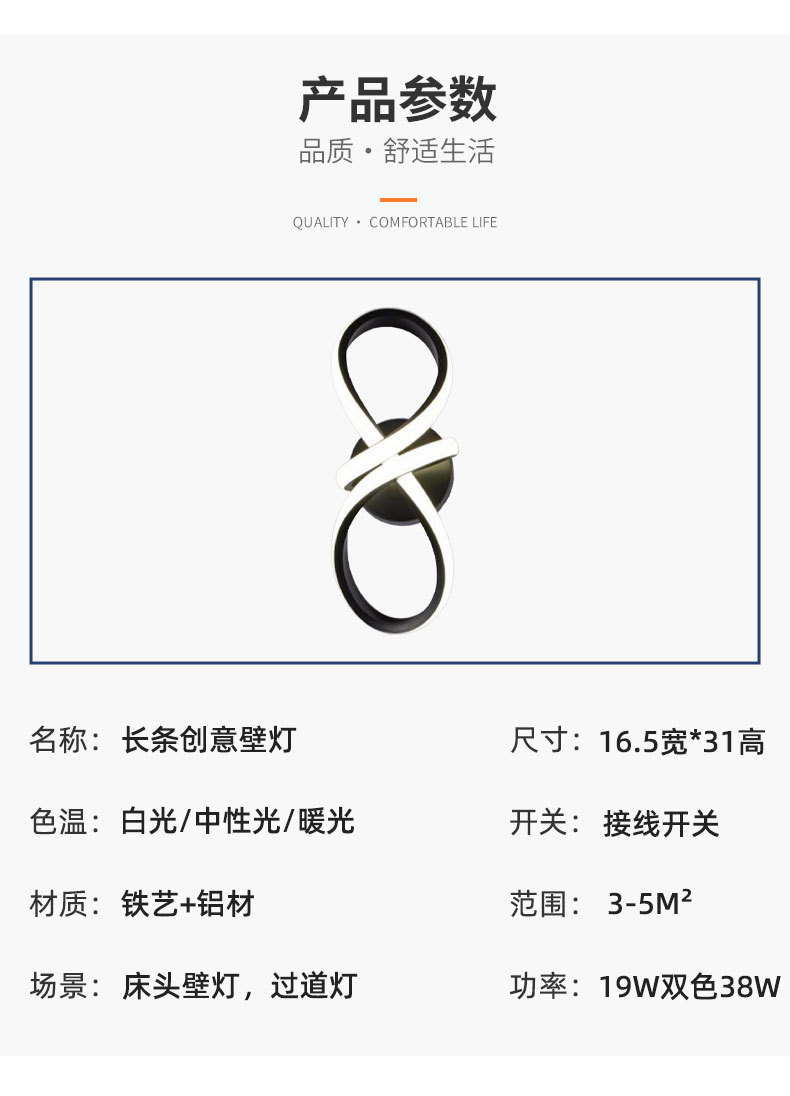 床头灯现代北欧创意客厅电视背景墙灯新款轻奢墙上壁灯卧室