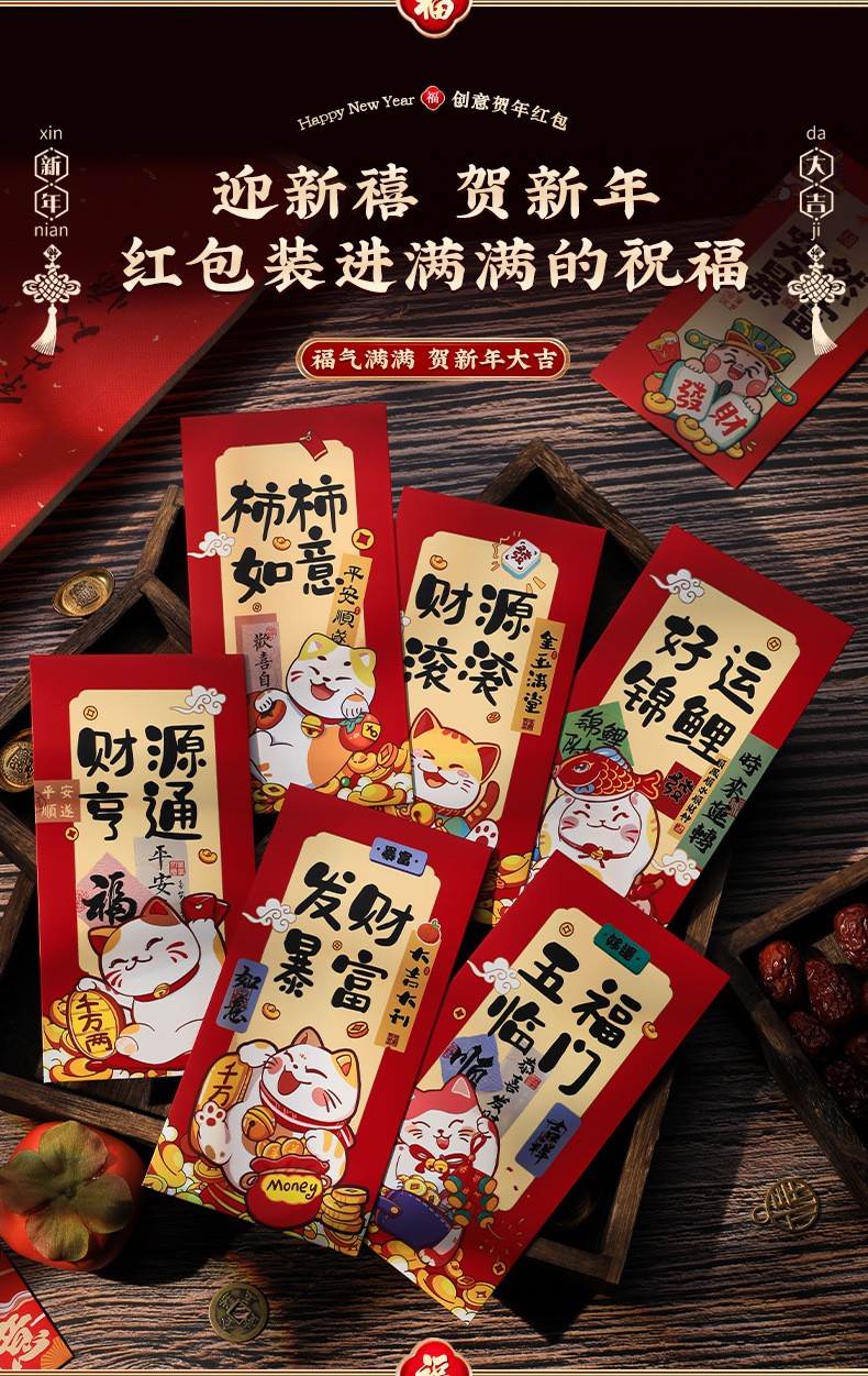 幸運の鯉【漫画お年玉袋】,柿如意 [漫画新年赤い封筒],すべてがうまくいきます【漫画の新年の赤い封筒】,平和と喜び [漫画の新年の赤い封筒],蛇年開運【キラキラカラー浮き出し新年赤い封筒】,祝福が続く【キラキラと濃い模様の百福新年赤い封筒】,開運【キラキラ新年赤い封筒】,金蛇が祝福をもたらす【キラキラ新年赤い封筒】,すべてがうまくいきます【キラキラ新年赤い封筒】,すべてがうまくいきます【キラキラ新年赤い封筒】,正月紅封筒 レーザータイプB ミックスパック