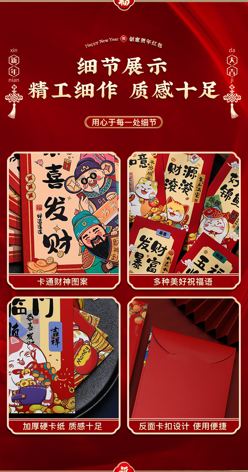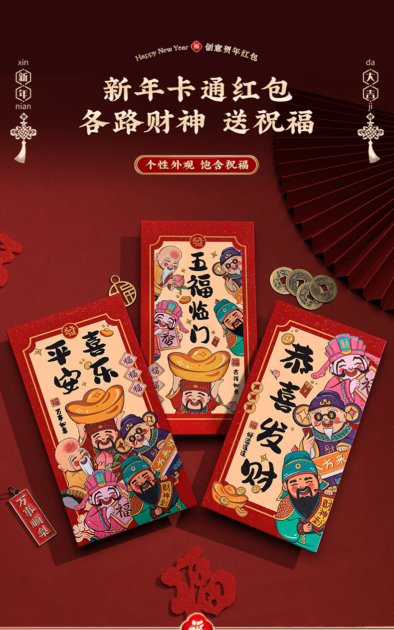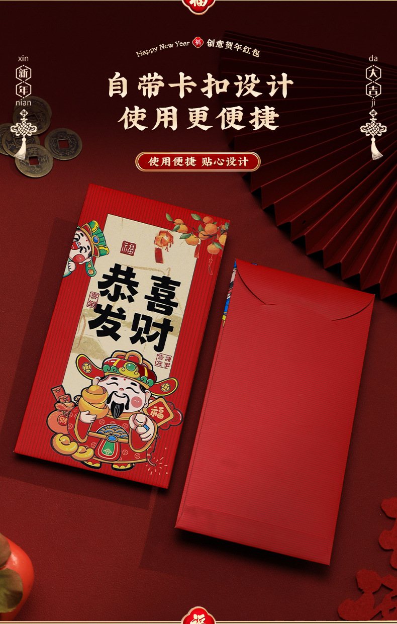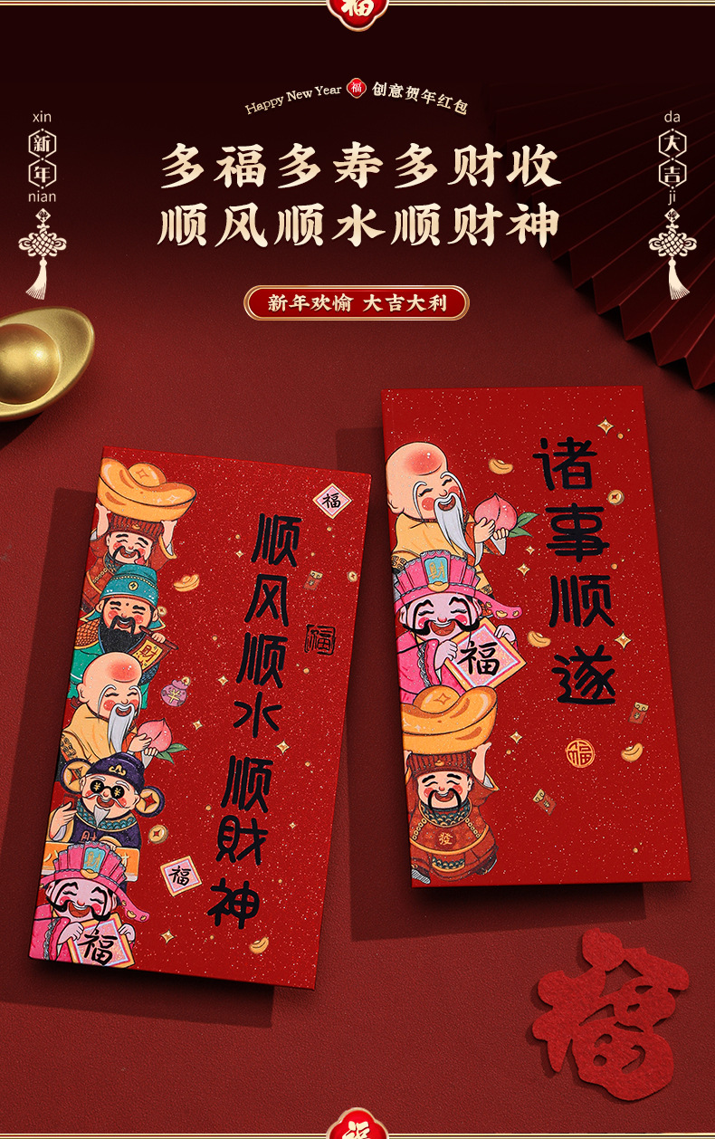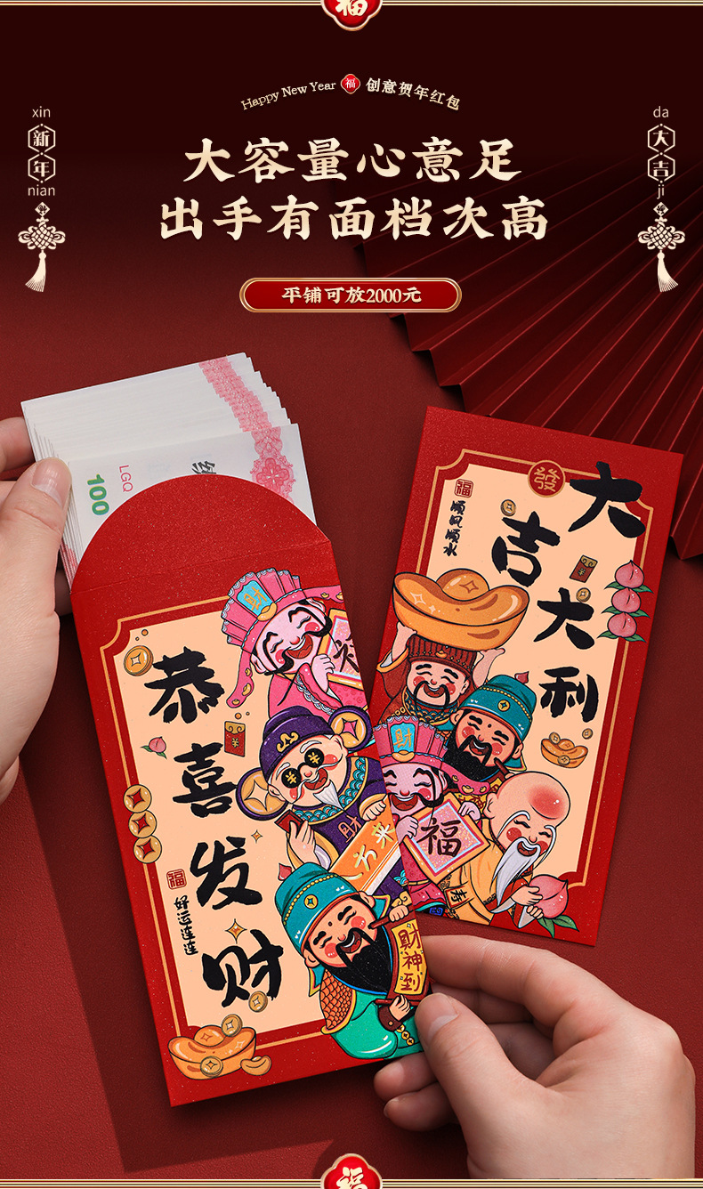 スポット卸売馬年赤い封筒オリジナル新しいホットスタンピング春祭り新年幸運と幸運百千元幸運封筒