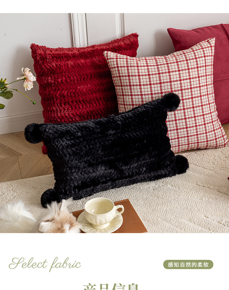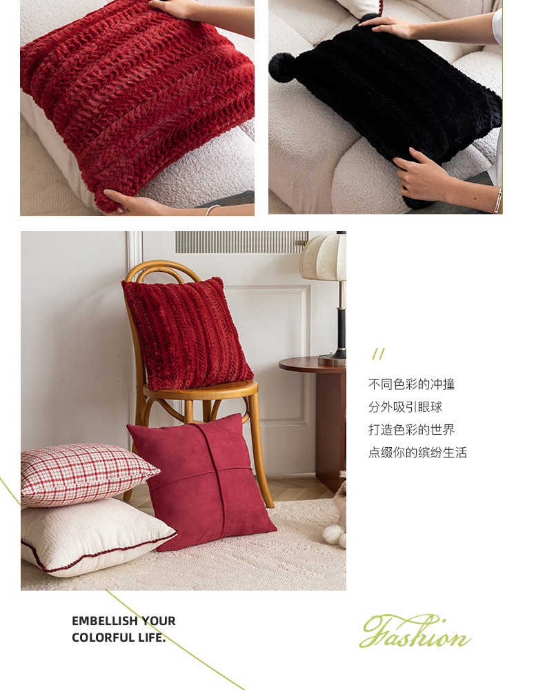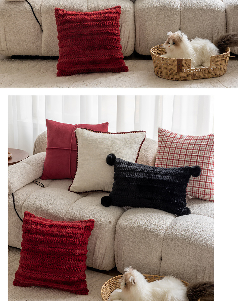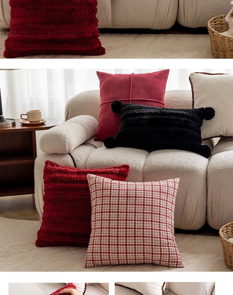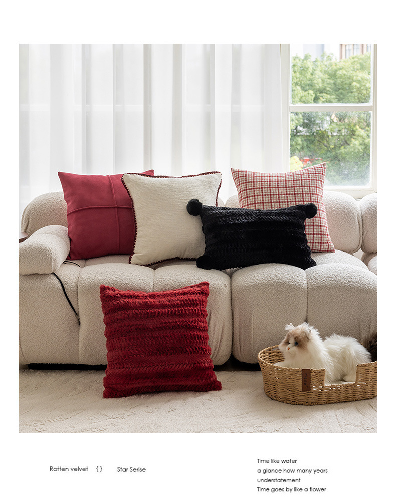 现代简约风毛绒抱枕沙发靠垫客厅沙发小香风靠枕床头雪尼尔喜庆红