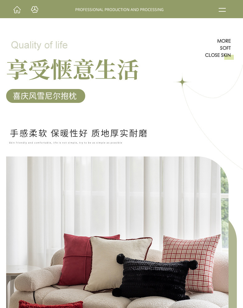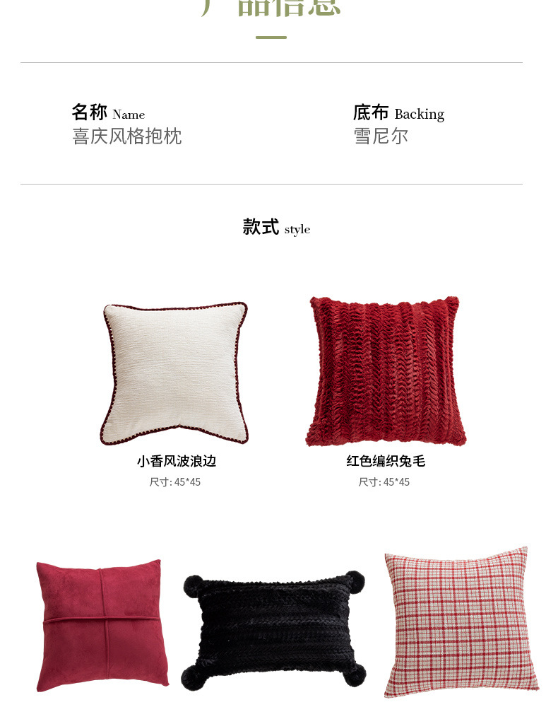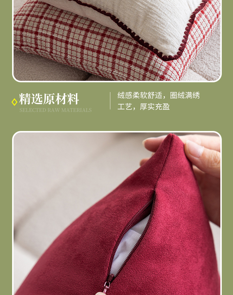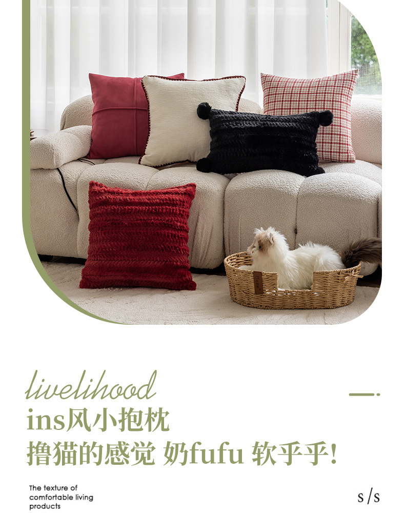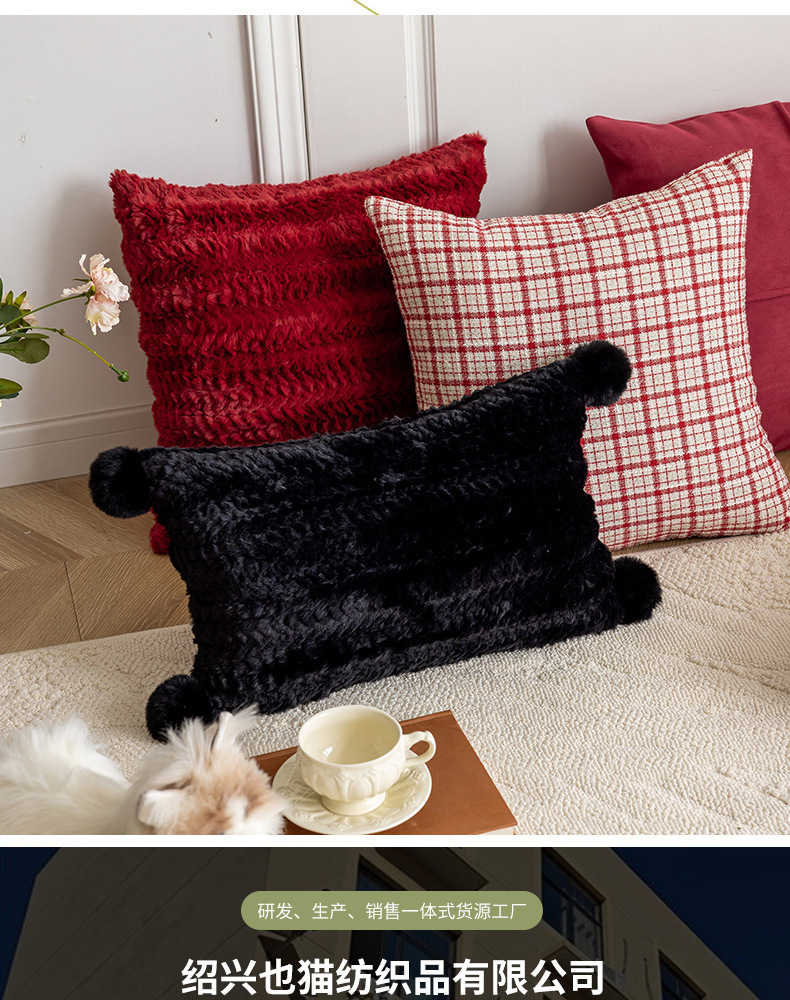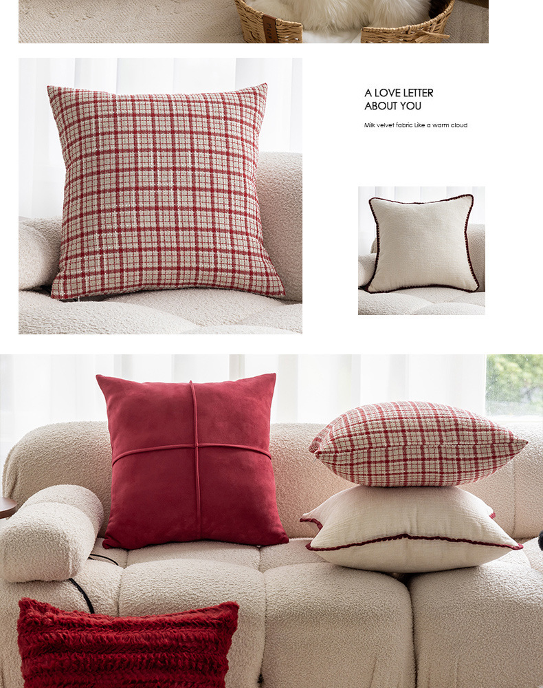 现代简约风毛绒抱枕沙发靠垫客厅沙发小香风靠枕床头雪尼尔喜庆红