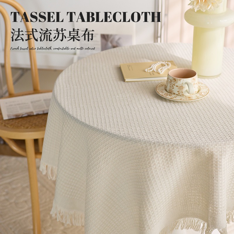 フレンチインスタイルコットンとリネン和風田園白テーブルクロスコーヒーテーブルクロスベッドサイドテーブルレトロタッセルラウンドテーブルテーブルクロス