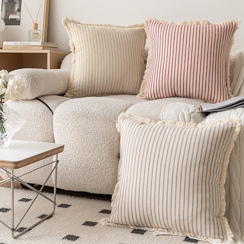 Ins風綿麻縞抱枕シンプルな家庭ソファークッションとフリンジのベッドの枕抱き枕カバー卸売り