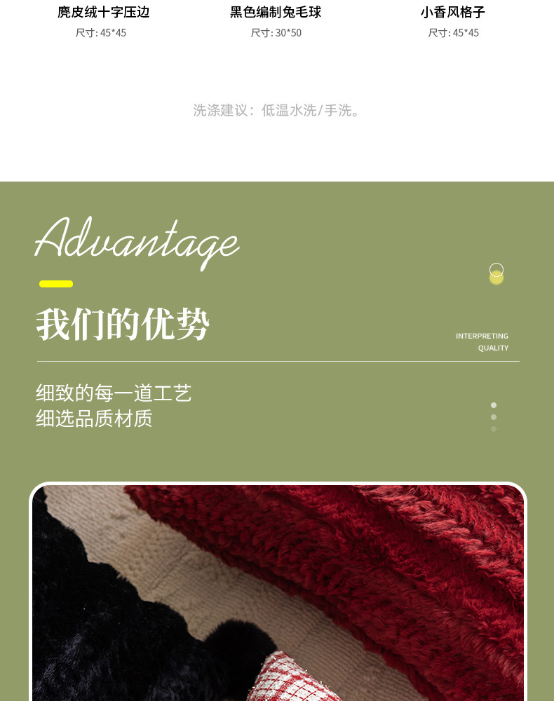 小さな香りのグリッド,スエードクロスエッジ,赤い編み込みウサギの毛皮,小さな香りの波状エッジ,黒の編み込みウサギのファーボール