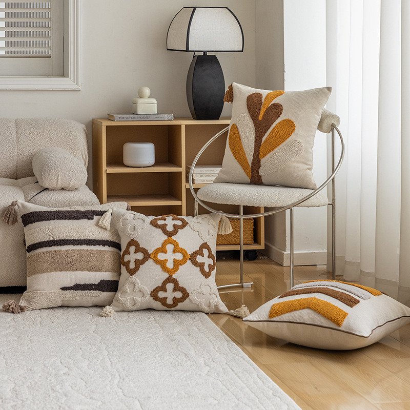 新しいインドタフテッドベッドルーム枕カバーモダンシンプルインスタイルリビングルームオフィスクッション枕セット