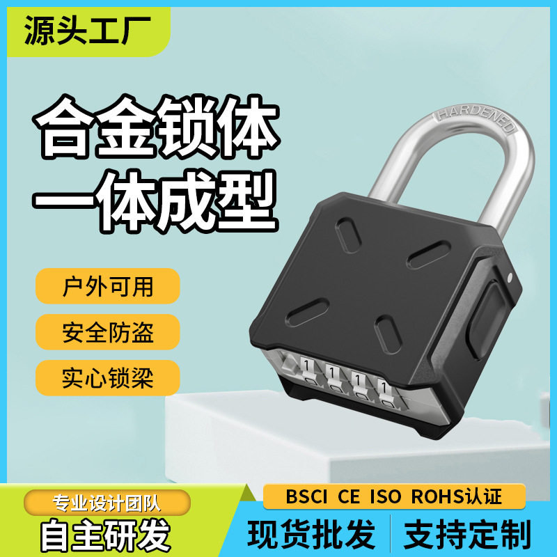 新款户外防雨4位密码锁弹跳锁梁锌合金密码挂锁坚固仓库大门底开