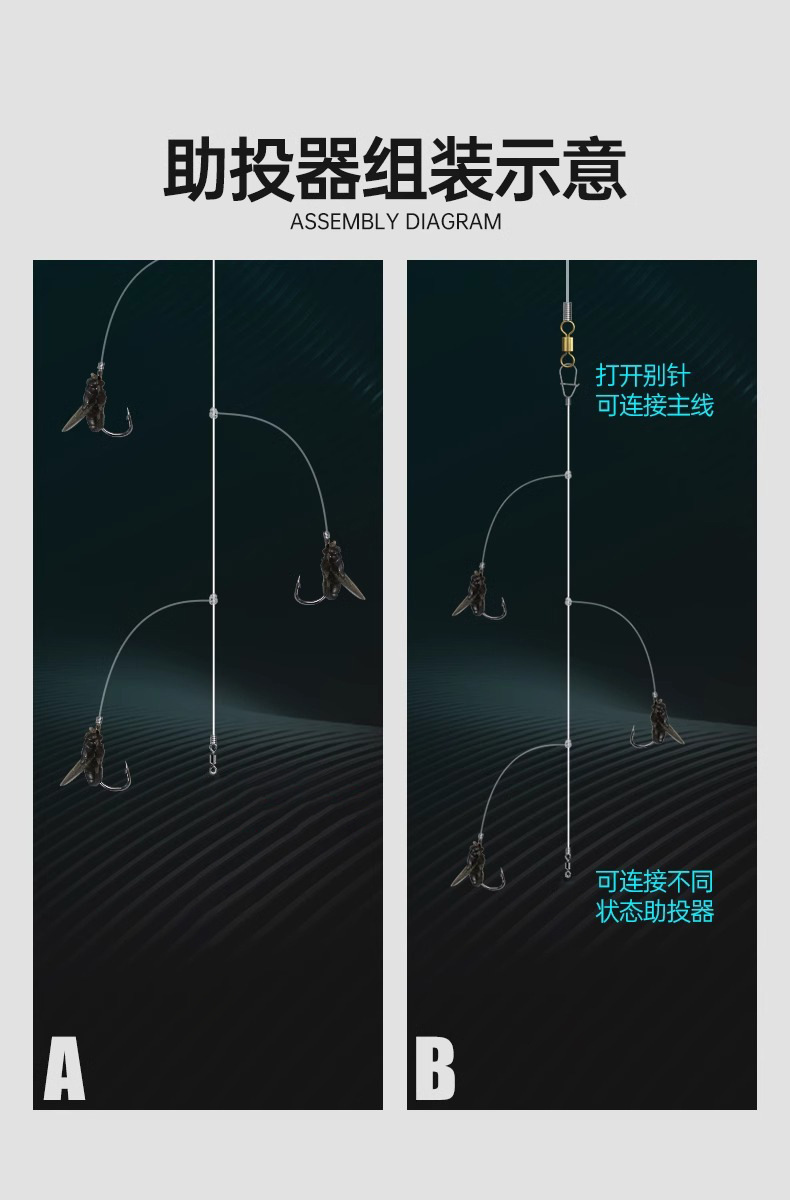 战鲢鳙方块钩旋转轴承浮钓鲢鳙钓组翻板钩防缠鱼钩海竿方块饵鱼钩