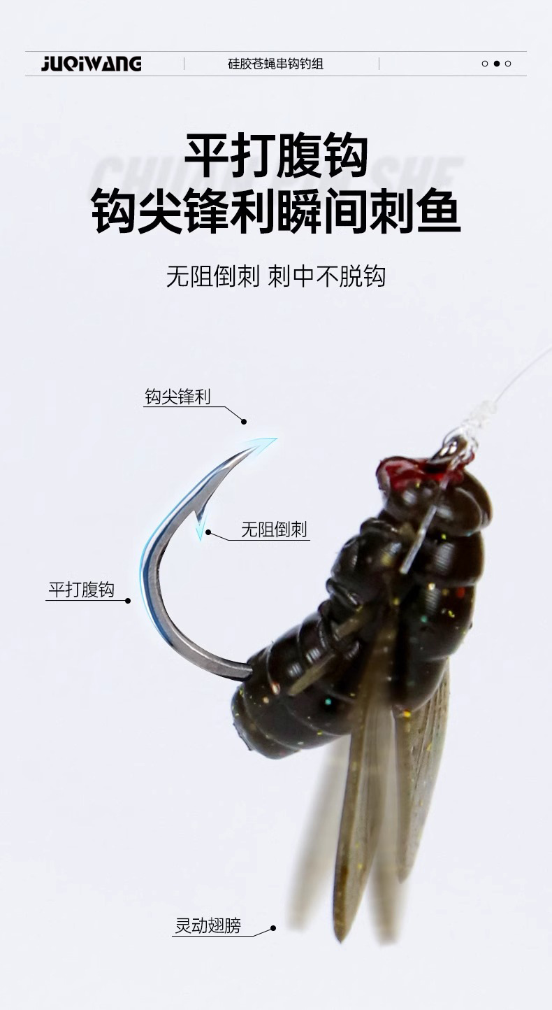 ルアーは生飛ハエをまねて釣って、ハエのフックの柔らかい餌を巻いて白い条の馬の口の専用の餌を釣って卸売りします。