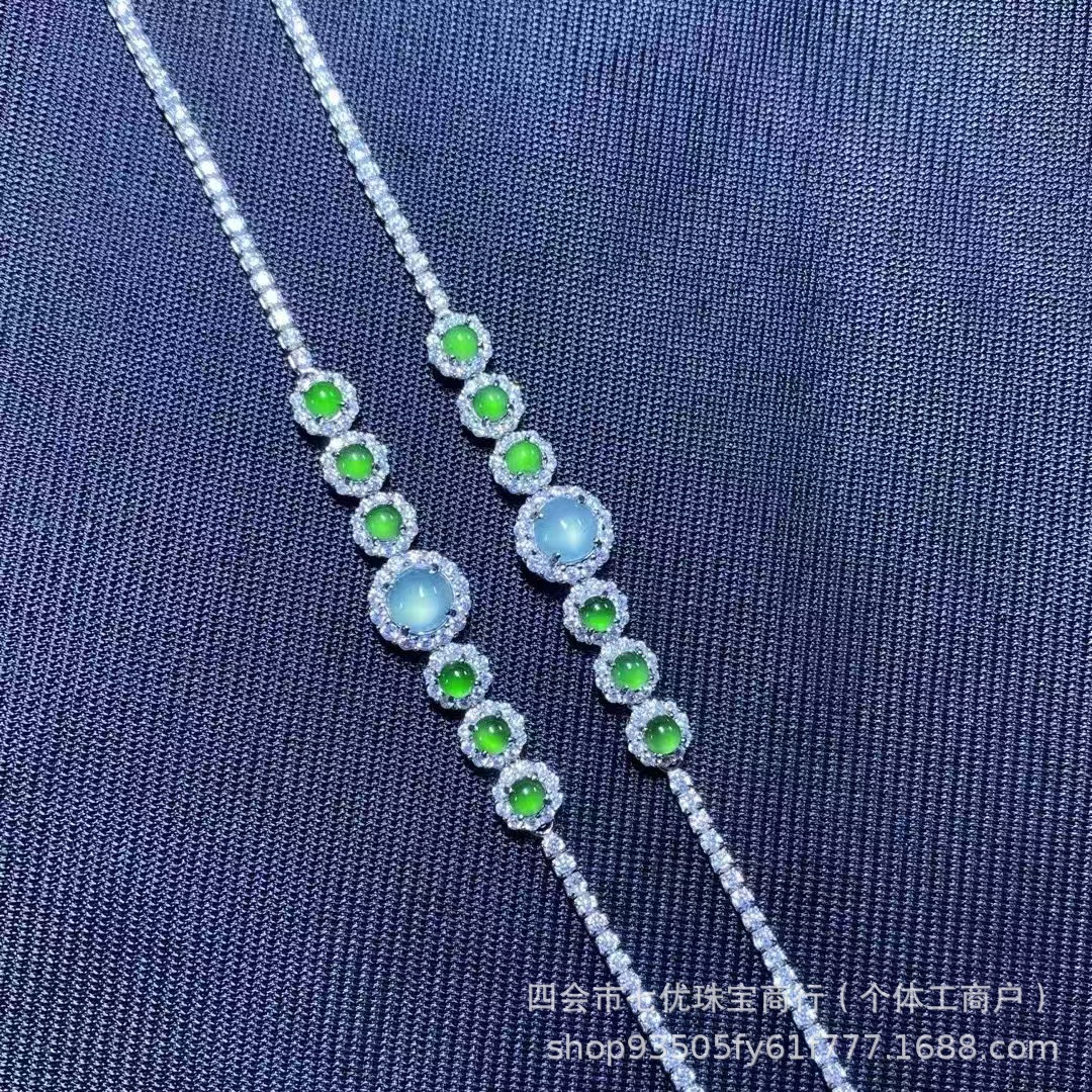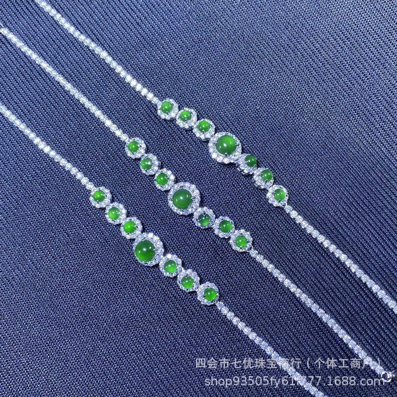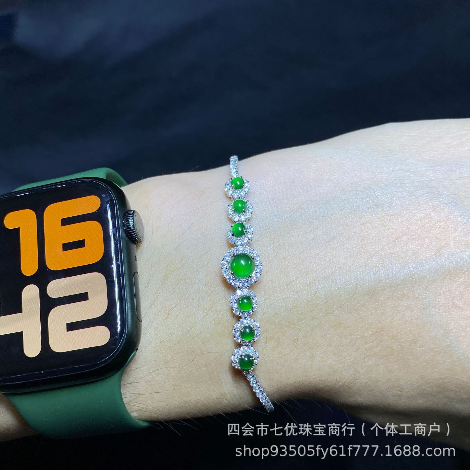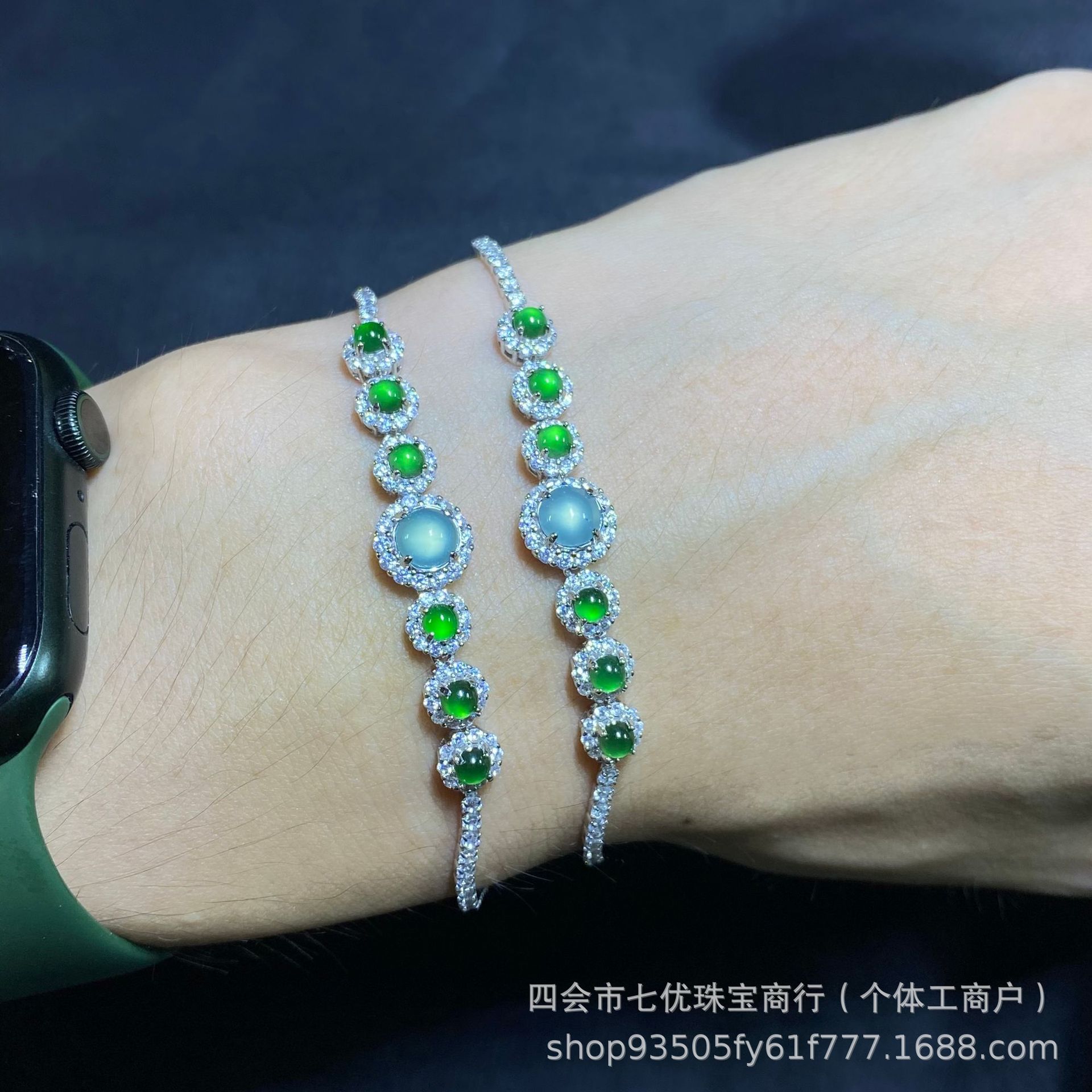 S925纯银镶嵌危料危地马拉翡翠蛋面手链水滴满绿阳绿直播批发手串