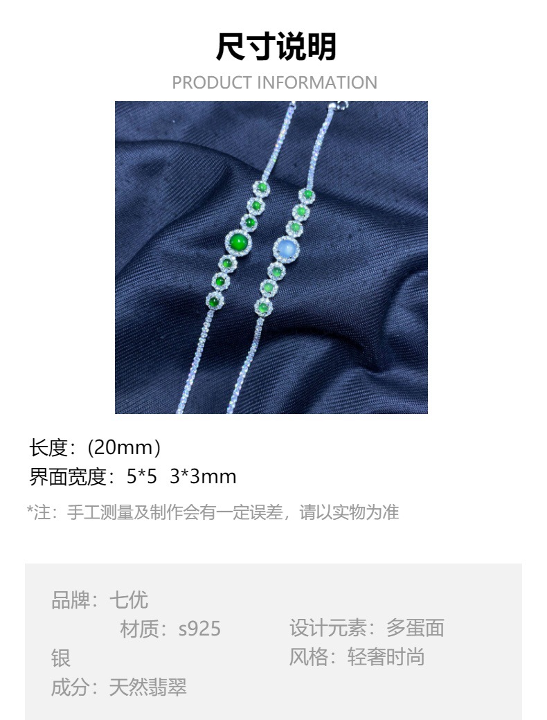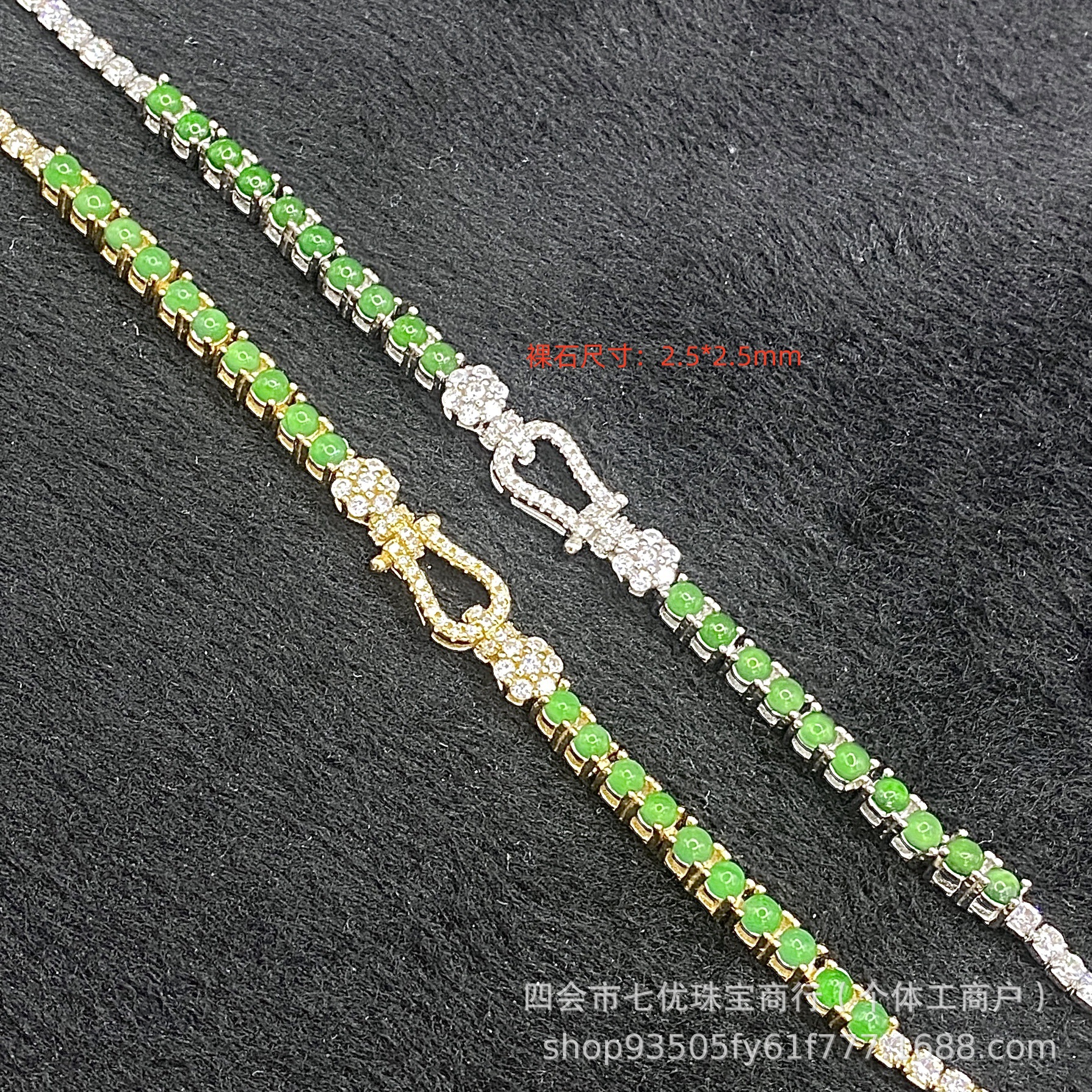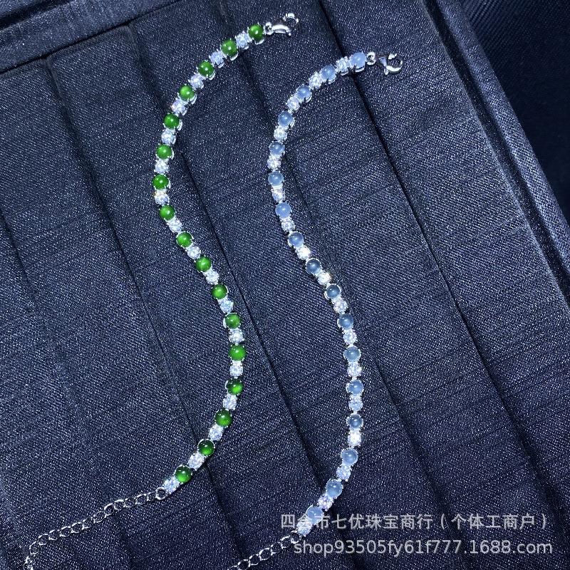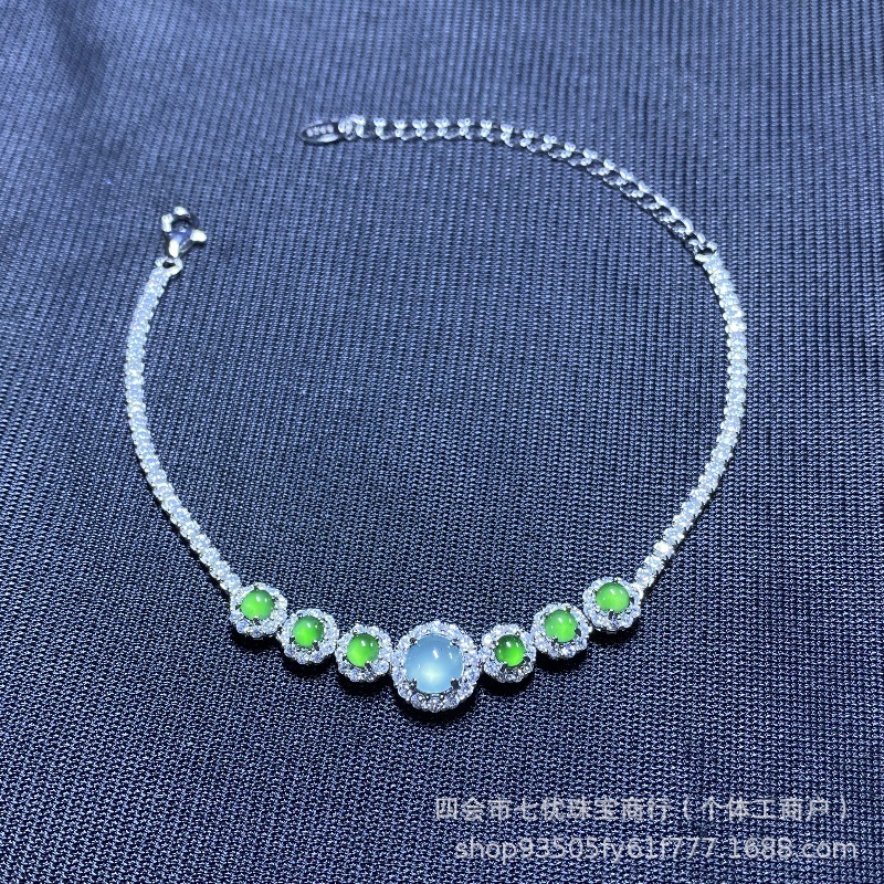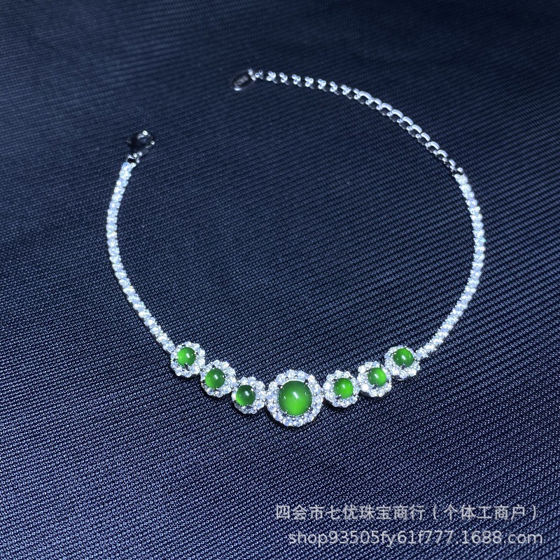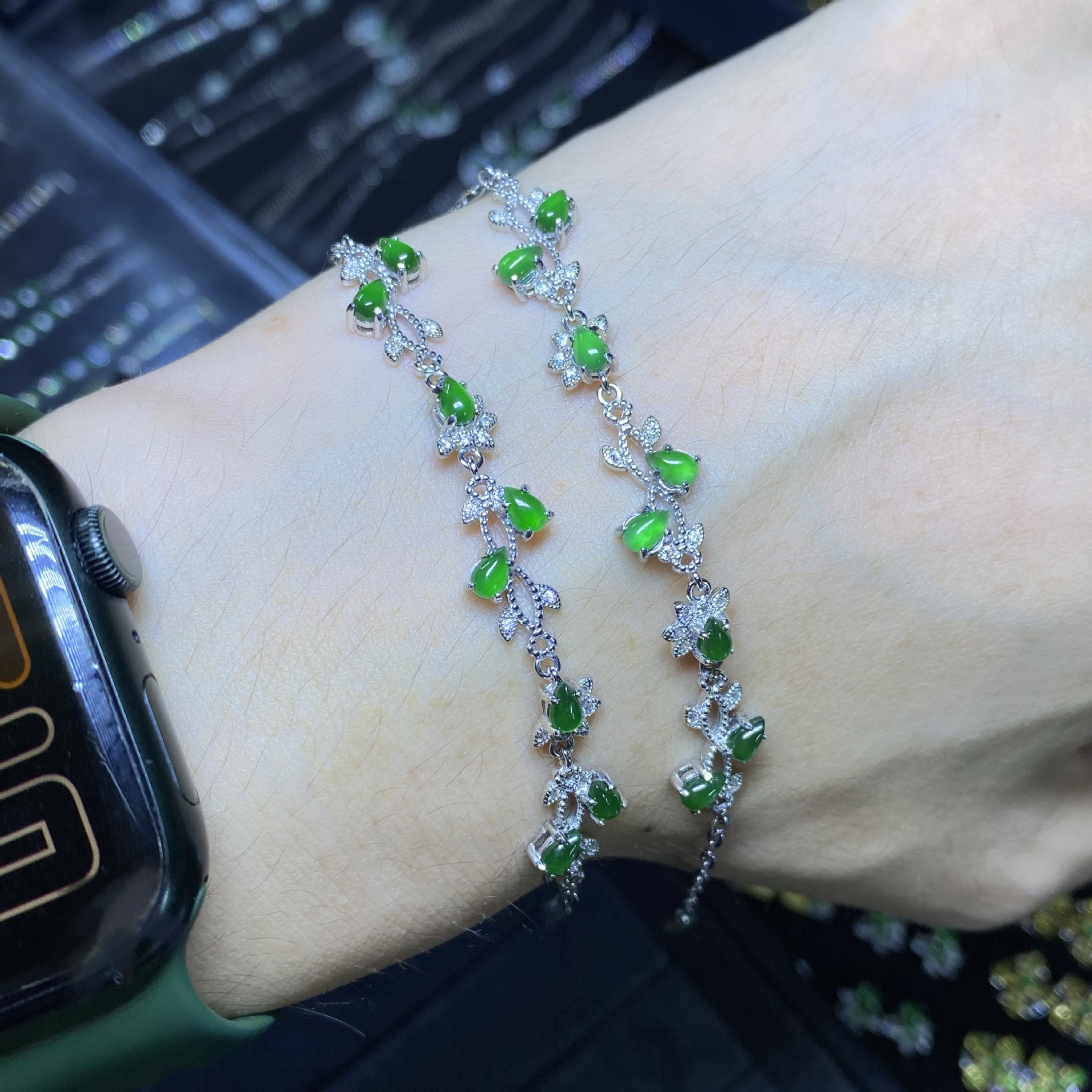 S925纯银镶嵌危料危地马拉翡翠蛋面手链水滴满绿阳绿直播批发手串