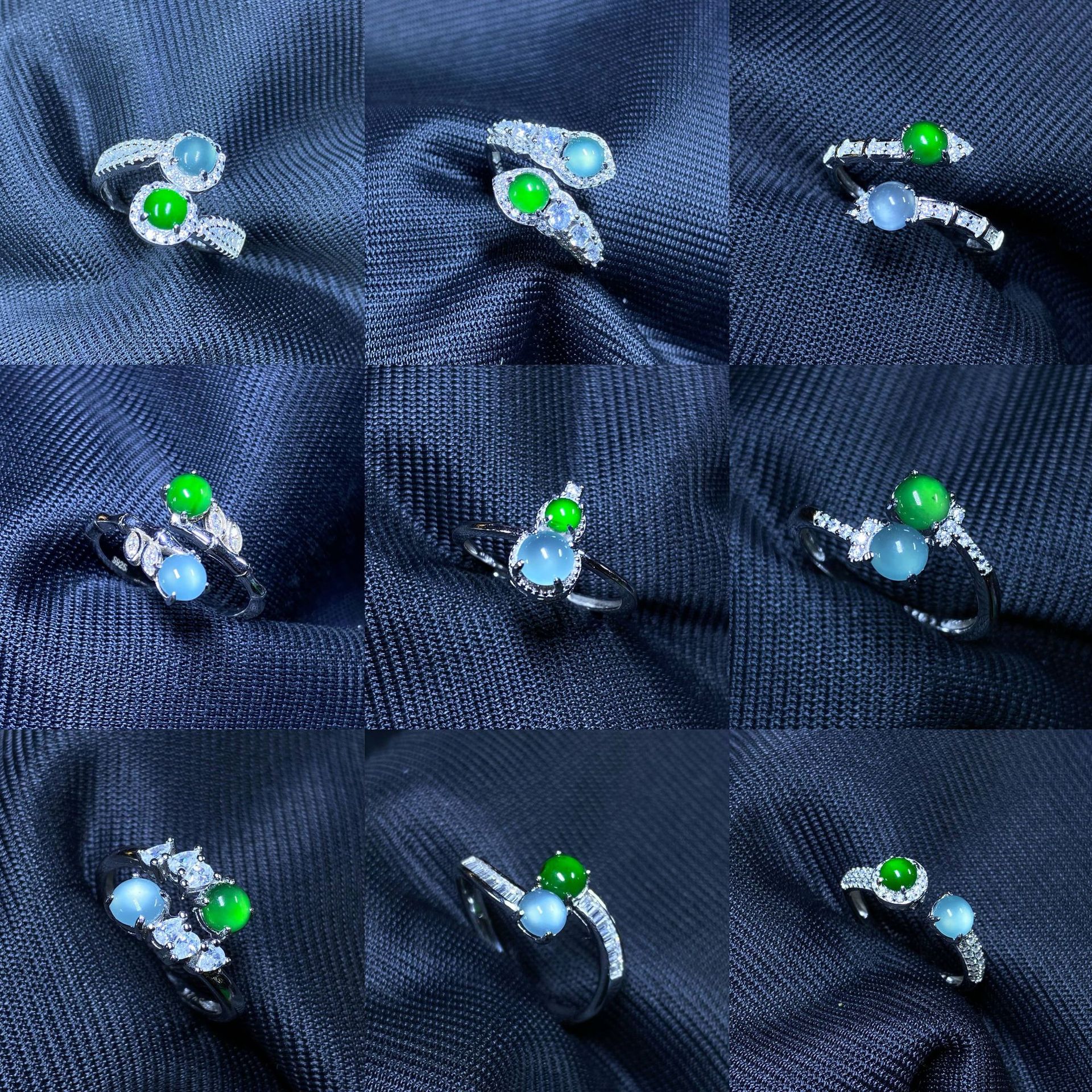 メーカーの爆発天然翡翠a類危険材料s925銀モザイク高氷陽緑双卵面ファッション女性指輪