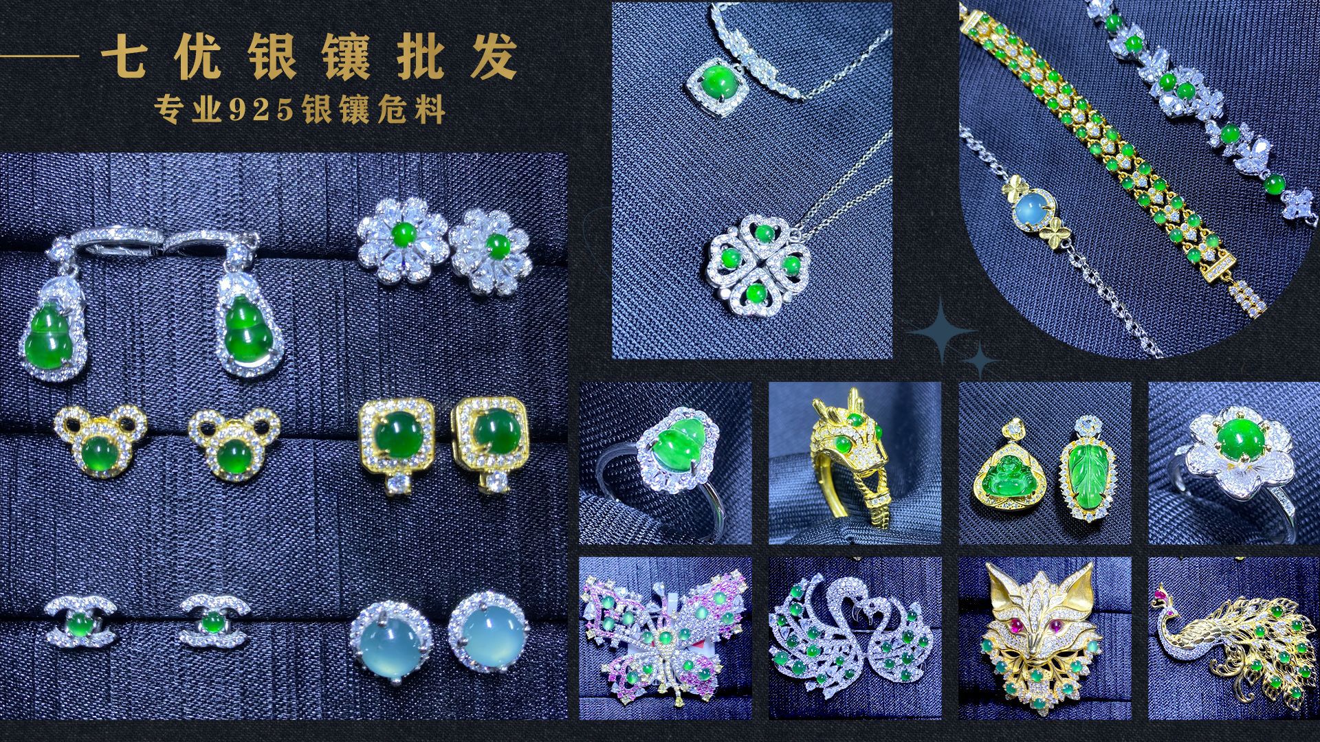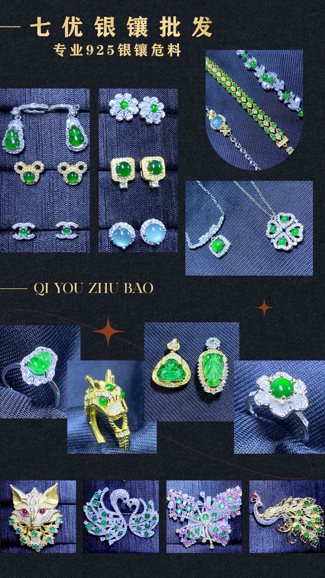 工場直販s925純銀天然A品翡翠危険材料豪華ボタンモザイク完成品卸売り