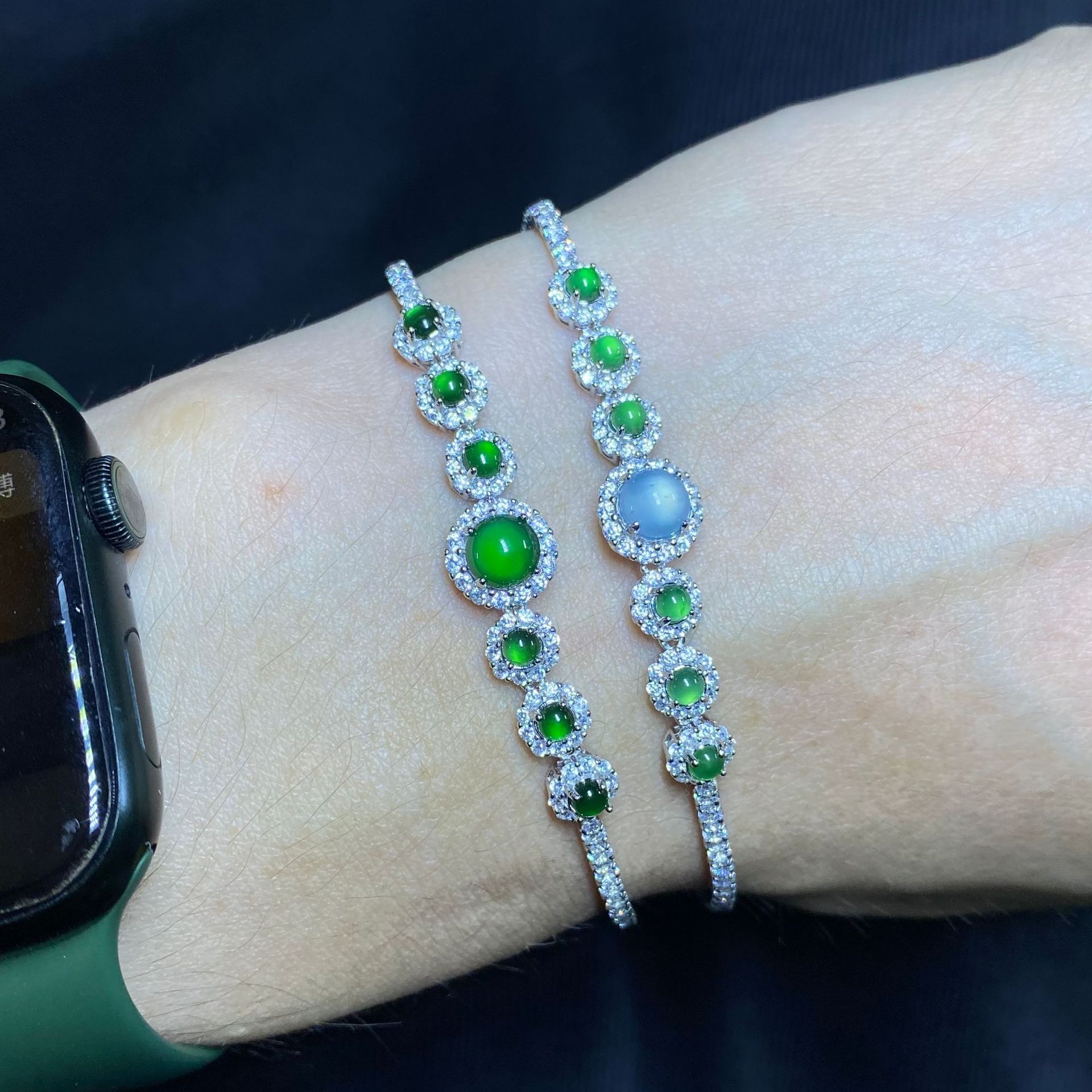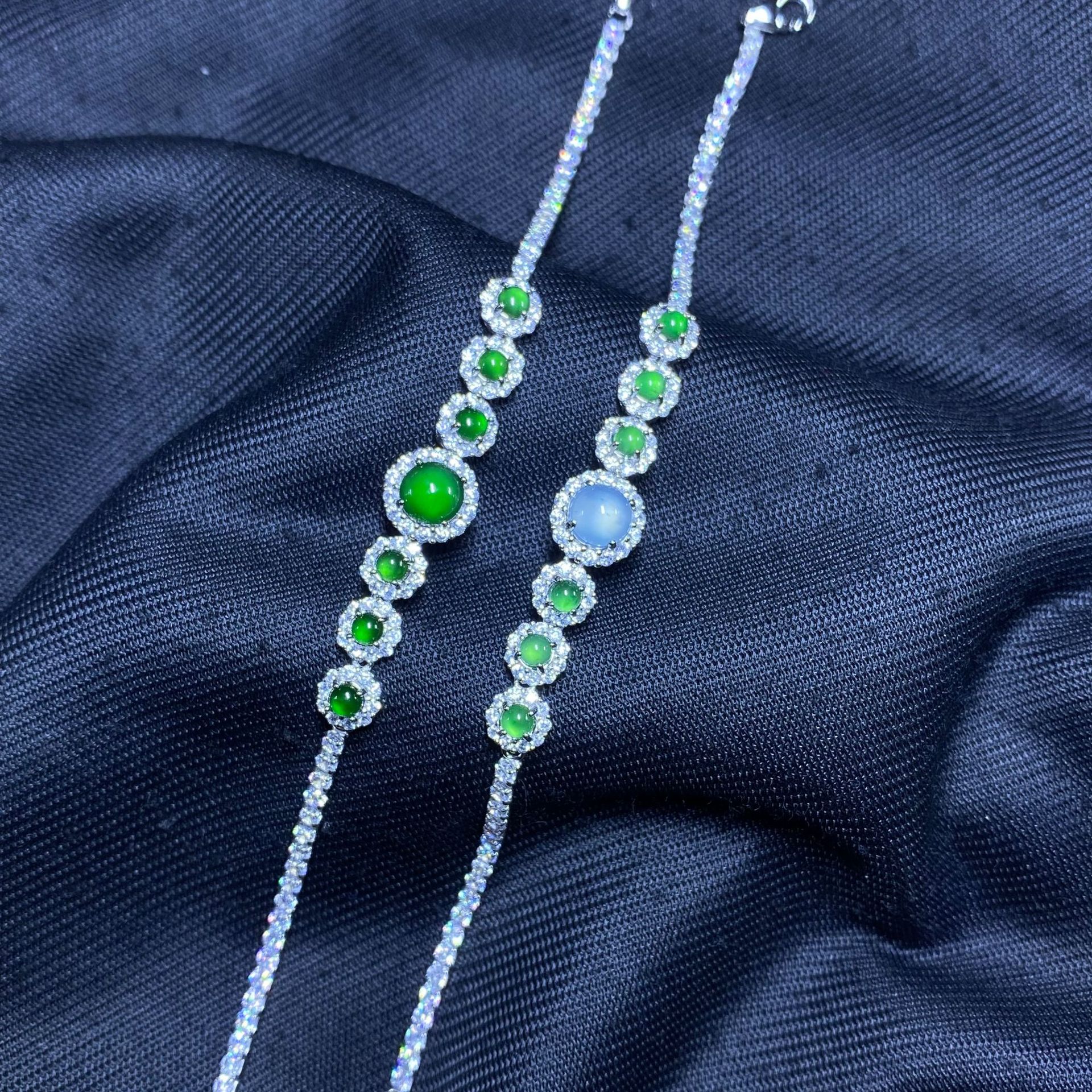天然翡翠A商品危険材料藍水高氷卵面s925純銀モザイク陽緑辛い緑色起爆ブレスレット