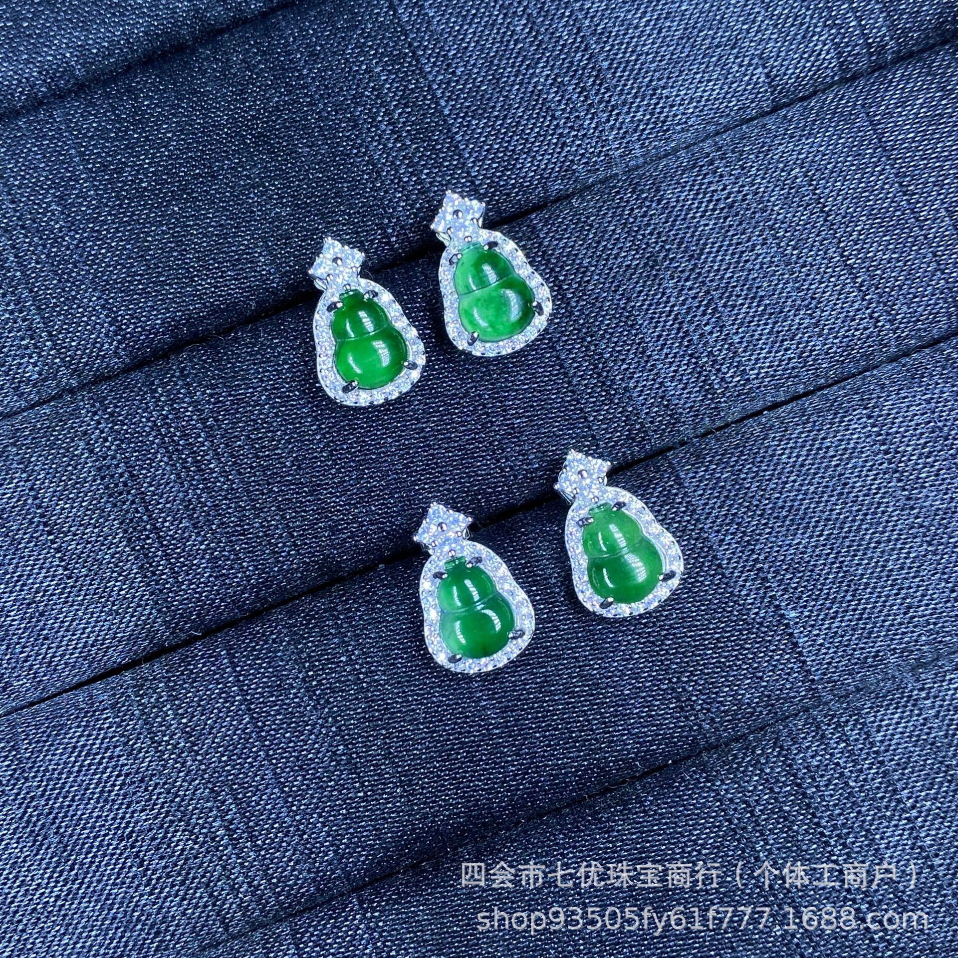 天然翡翠S925純銀ひょうたん陽緑翡翠ピアス玉新中国式軽贅沢高級感耳飾り