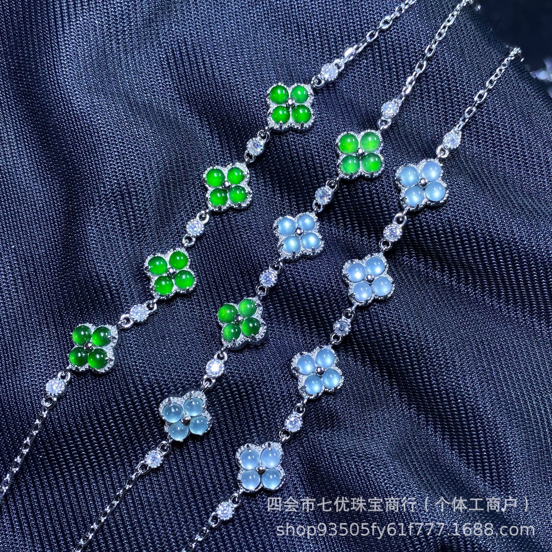 天然翡翠A商品925銀モザイク四葉草危険材料青い水ブレスレットジュエリー高氷玉アクセサリー卸売り