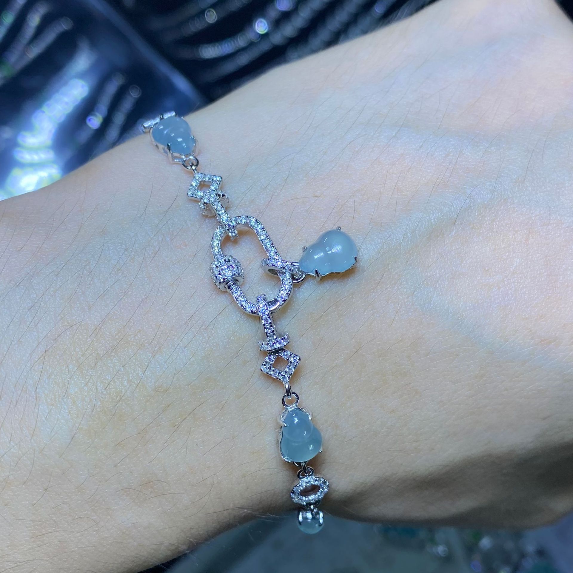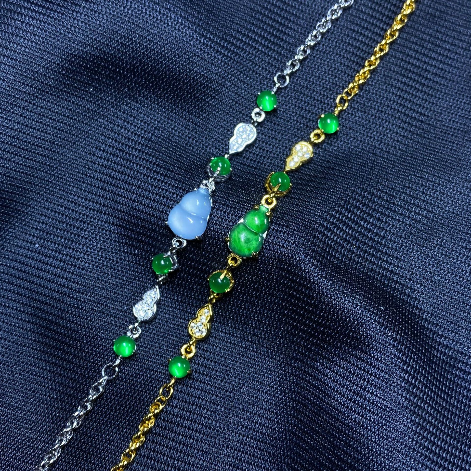 人気商品卸売 天然翡翠A級危物S925純銀象嵌高氷青水辣緑福禄葫芦ブレスレット