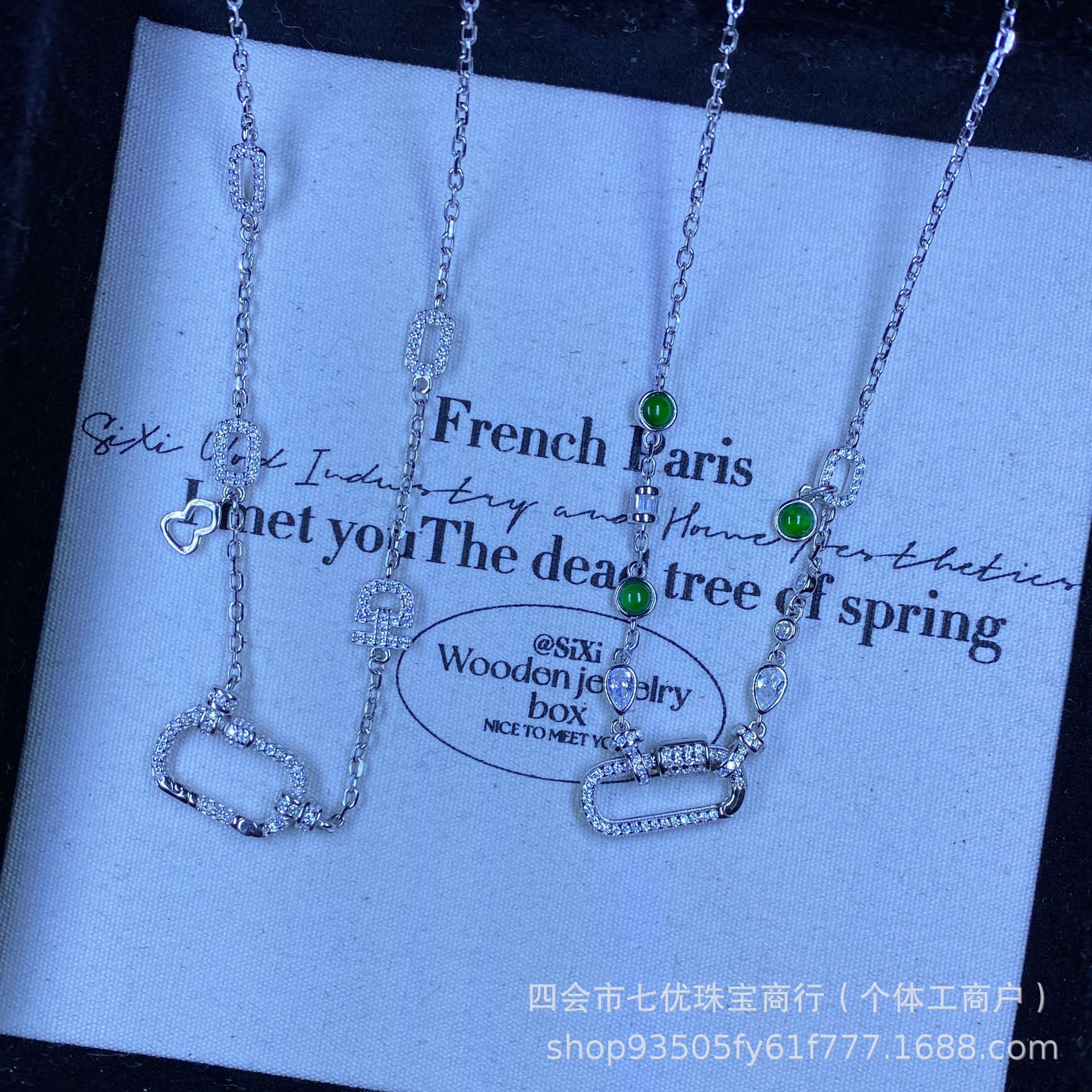 人気のユニバーサルバックルネックレス天然翡翠AグレードS925スターリングシルバー象嵌ユニバーサルチェーン調節可能な多用途ファッションネックレス