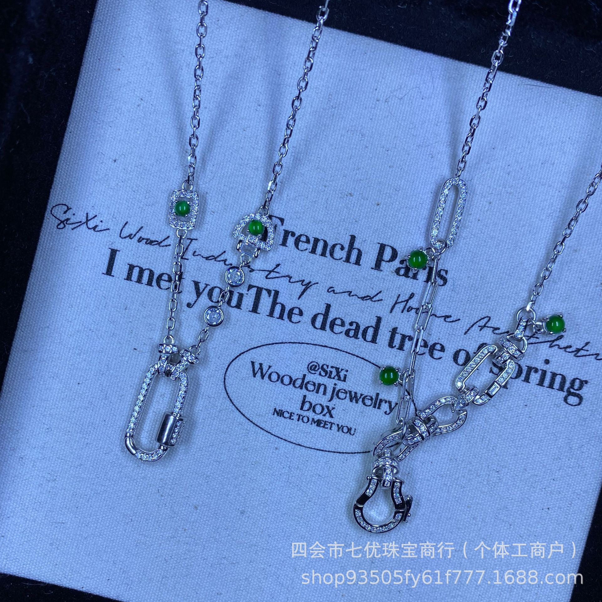 人気のシルバー象嵌天然危険な翡翠クラス A S925 スターリングシルバー調節可能なハイエンド多用途ユニバーサルバックルファッションネックレス