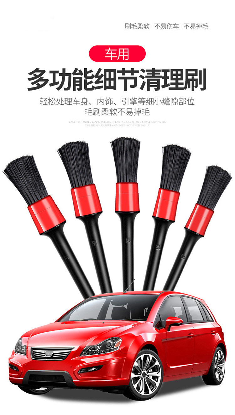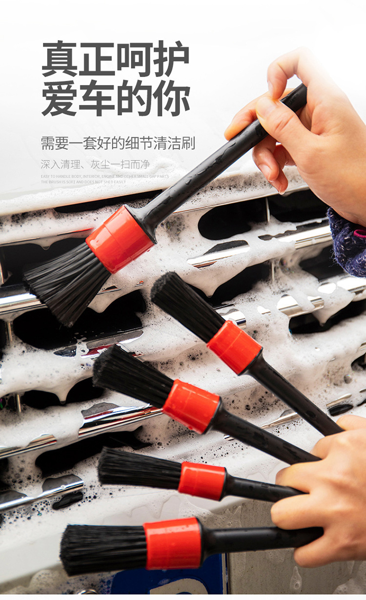新款汽车用清洗圆刷 车载美容细节刷缝隙刷 洗车清洁小毛刷 5件套