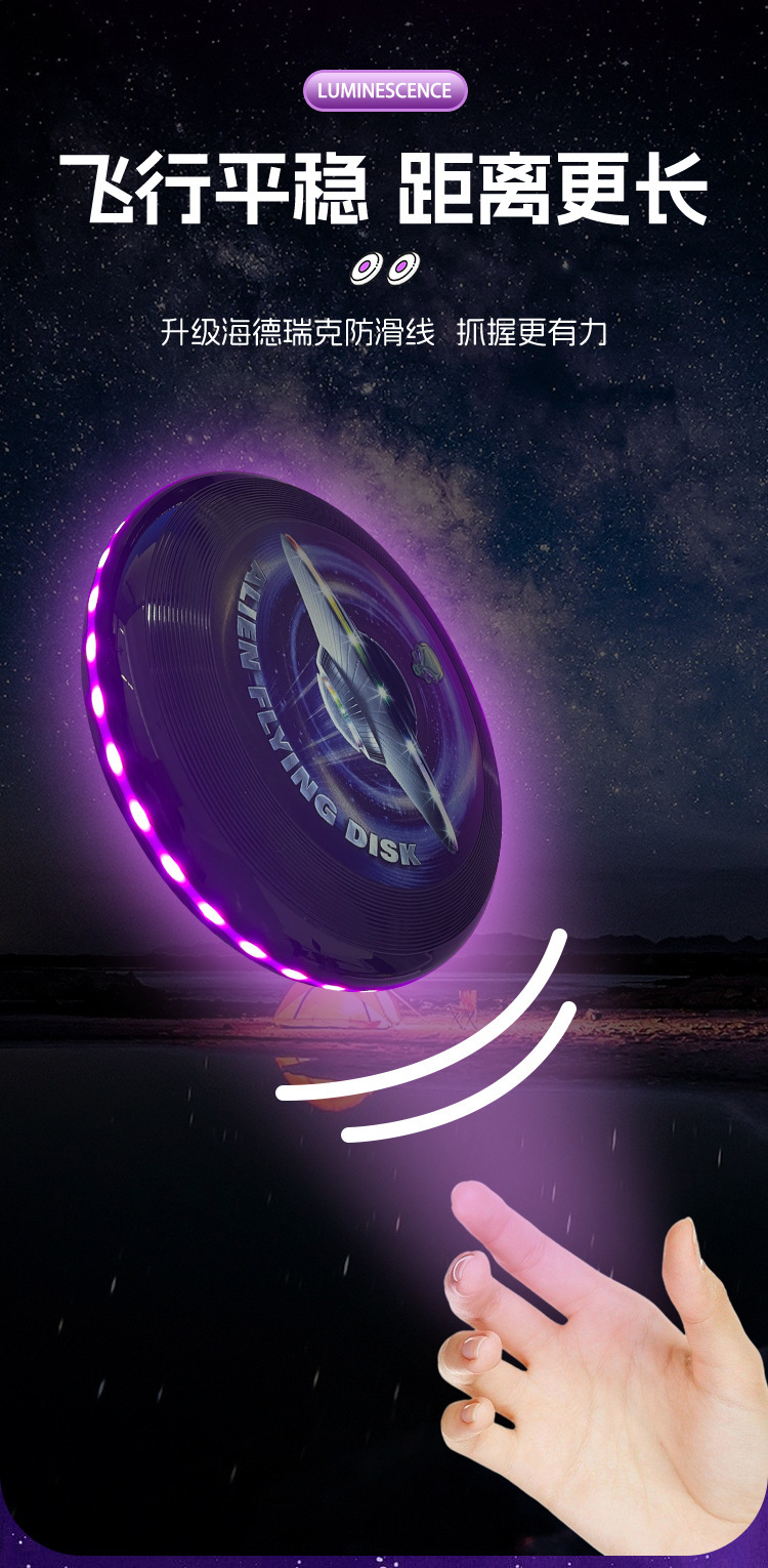アマゾン新型アウトドアスポーツ競技フリスビー子供ソフトフリスビーLEDライト超大発光フリスビー玩具