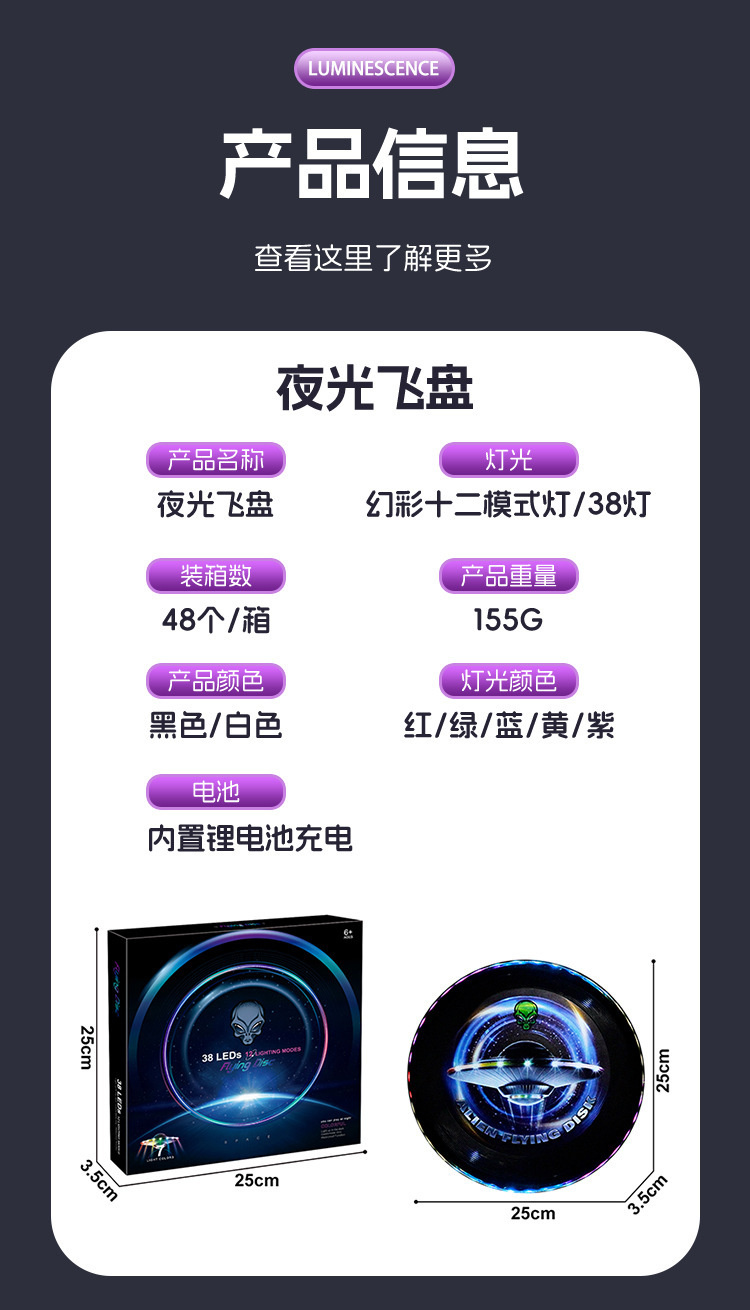 仕様 ルミナスフリスビー ブラック【 25cm 】,ルミナスフリスビー ホワイト【 25cm 】