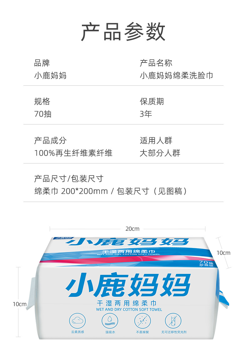 鹿のお母さんの顔のタオルの男女の厚い綿の柔らかいタオルの使い捨ての抽出式の顔のタオルの清潔なタオルの乾湿の両用