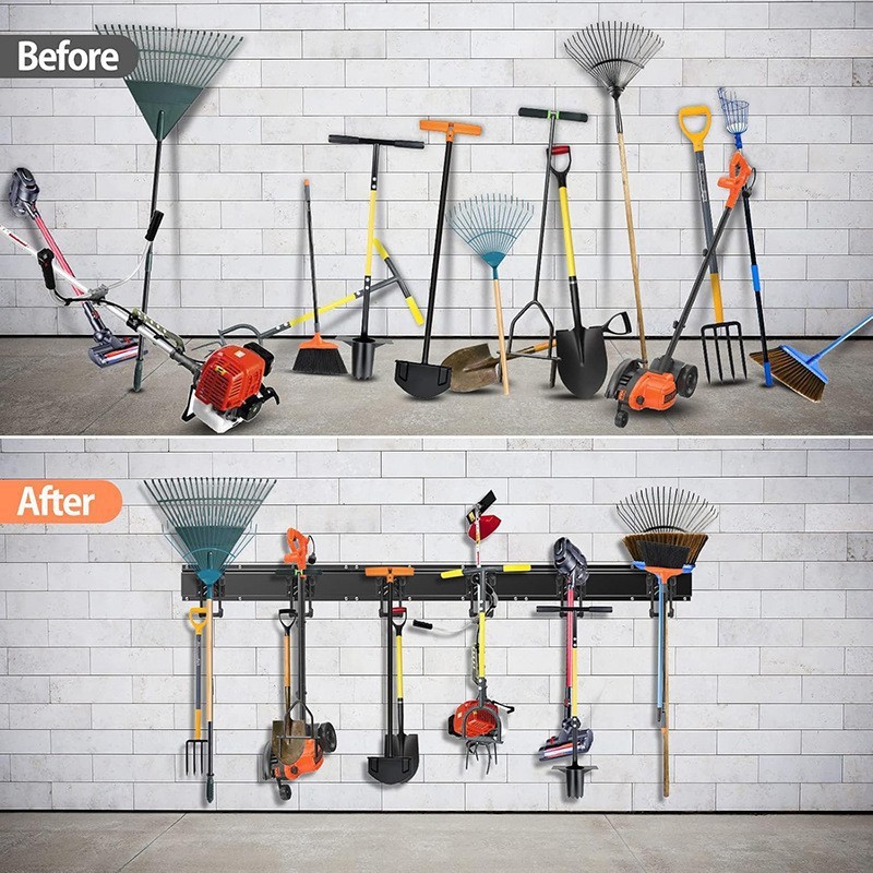 庭ガーデニングツールオーガナイザー壁掛けラック重いツールシャベル熊手壁掛け式調節可能なフック