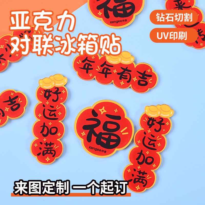 2025 新年ギフトアクリル春祭り小さな対句冷蔵庫マグネットセット祝福磁気ホームデコレーションステッカーカスタマイズ
