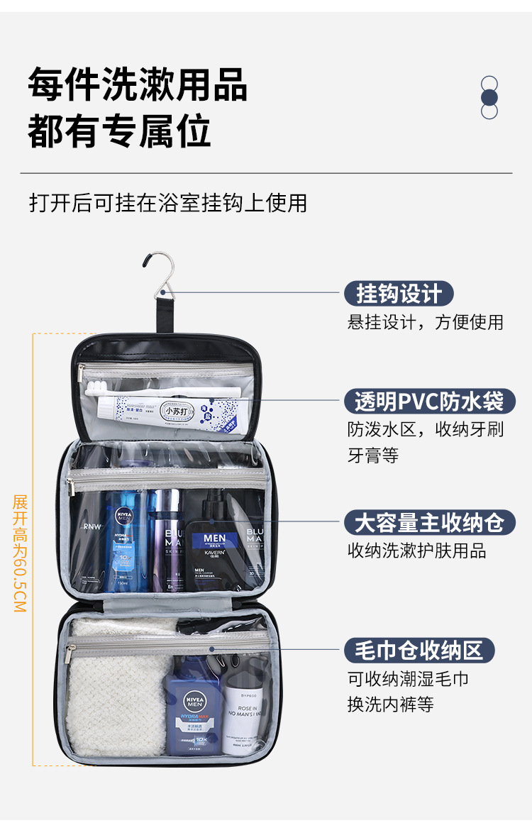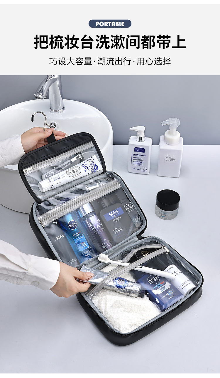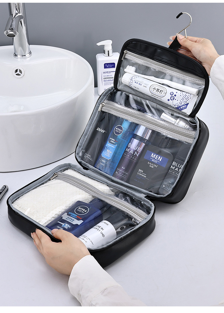 ビジネス大容量pu洗面バッグメンズ高級感クロスボーダーアマゾンパーテーションポーチ収納収納防水