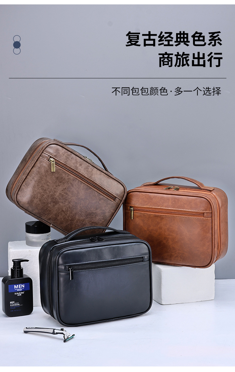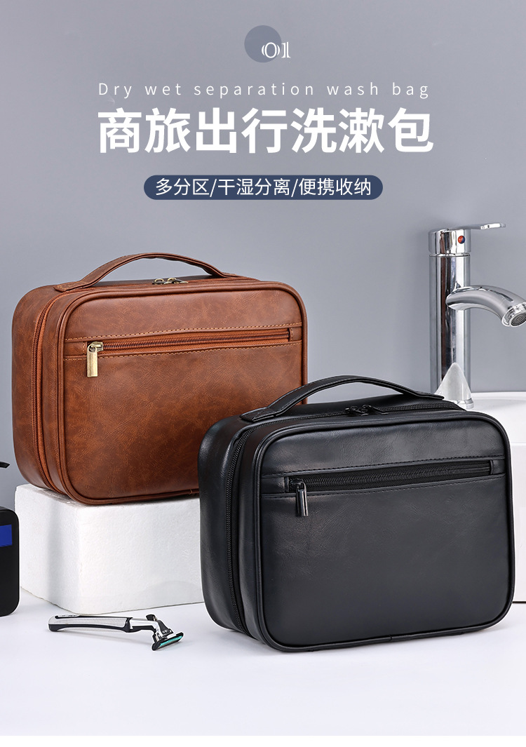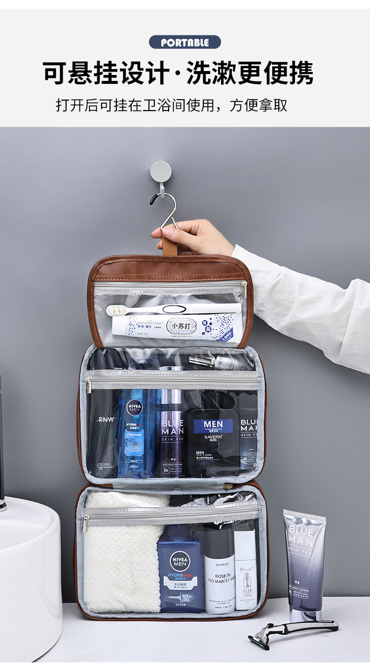 国境を越えた新製品二層ビジネス通勤PUメンズトイレタリーバッグ大容量ハイエンドパーティション収納化粧品バッグ