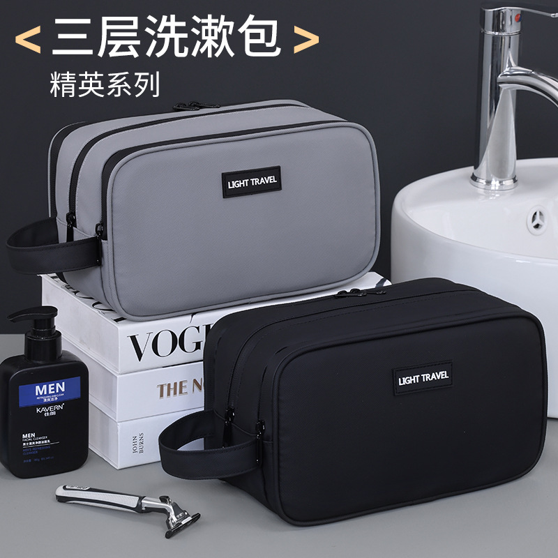 クロスボーダー新品エリート三層洗面バッグ乾湿分離大容量高級感ビジネス旅行メンズ化粧バッグ