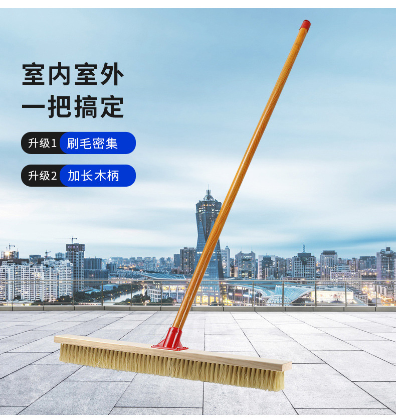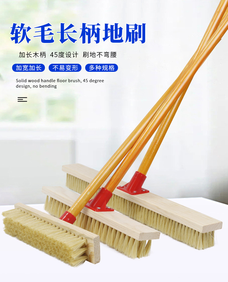 茶色の毛の床ブラシ長い木製ハンドル工場学校大面積床掃除床ブラシ模造毛柔らかい毛床ブラシ