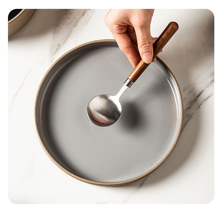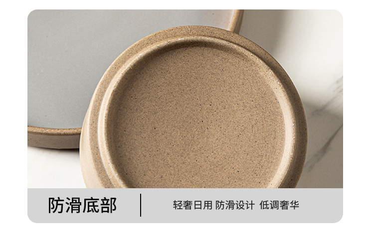 粗陶サビ釉薬皿レトロ陶磁円盤茶点皿果物皿小食皿家庭用軽豪華高級感食皿