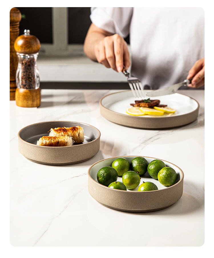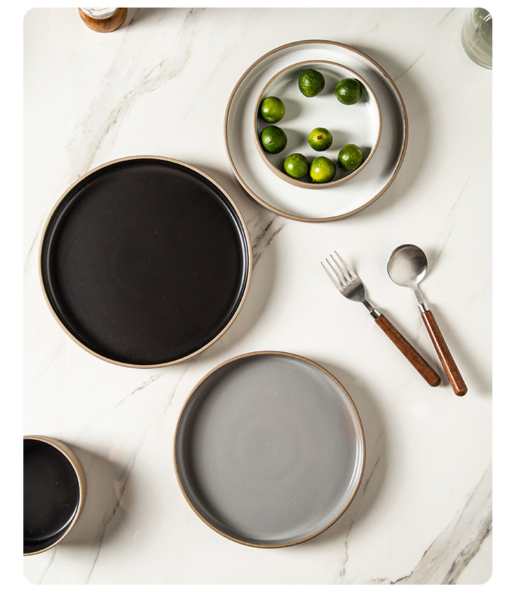 レトロな粗い陶器のプレート家庭用ディッシュプレートスープボウル和風インセラミックディナープレート餃子プレートステーキプレートラウンドトレイ