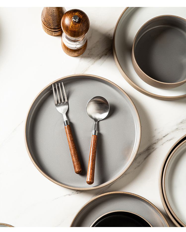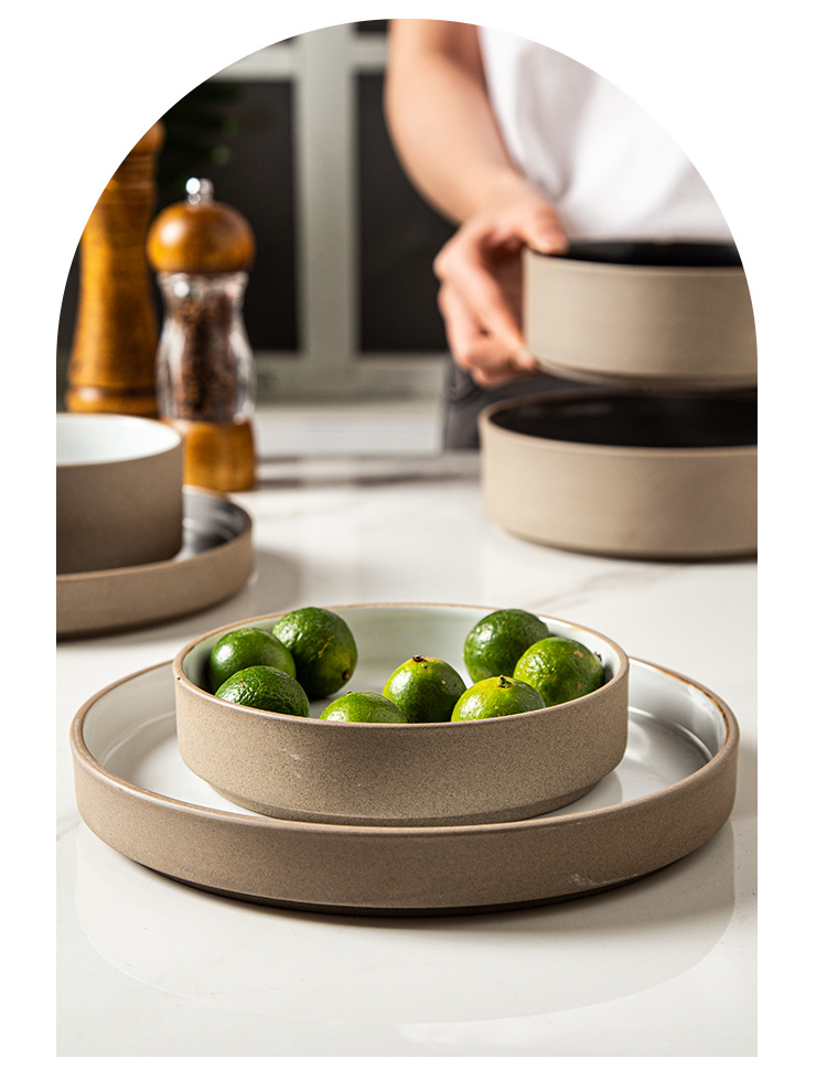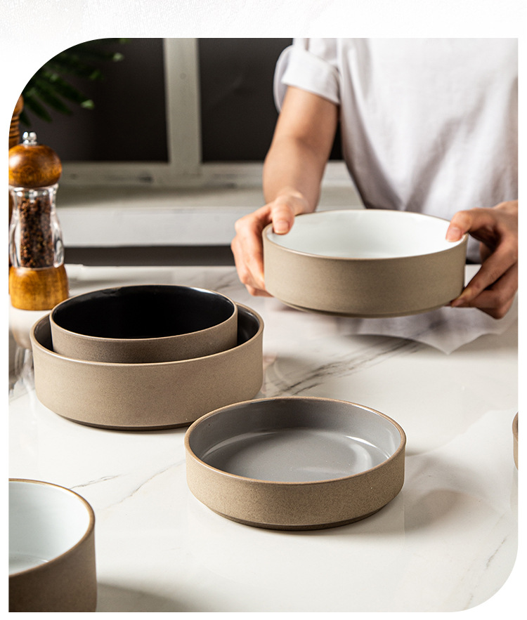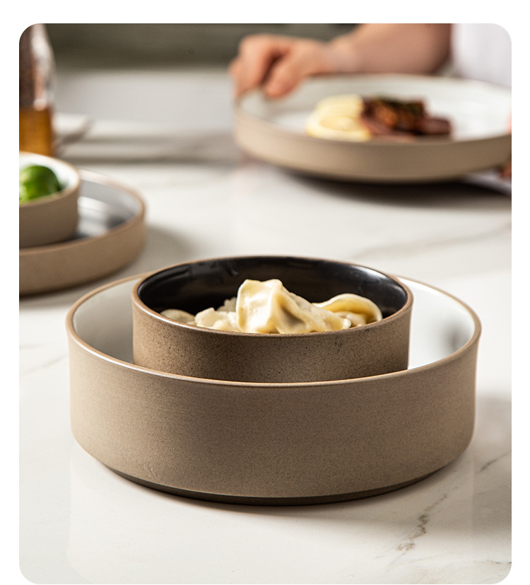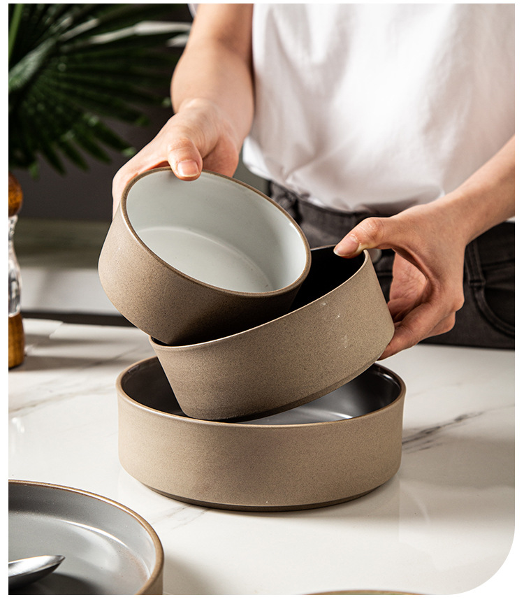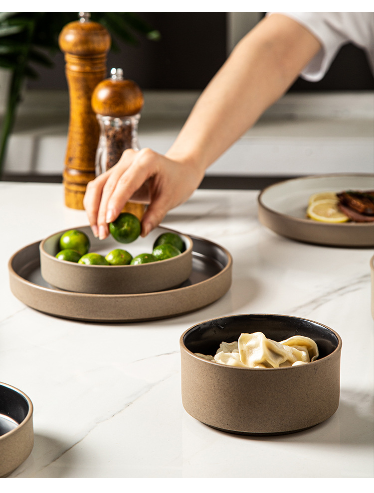 粗陶家庭用食器茶碗スープ碗シンプル餃子トレー皿レトロ日本式陶磁器碗皿セット