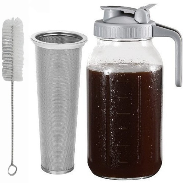 64オンス目盛付きメイソン缶冷やかんガラスポット32オンスセットコーヒーストレーナー取っ手フタ付きガラス瓶