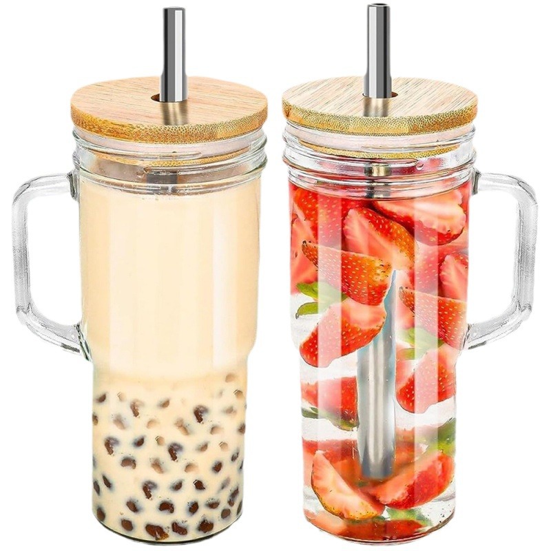 アマゾンの人気24オンスハンドメイソンカップ車載アイスカップ木蓋ビールカップガラスストローカップミルクカップ