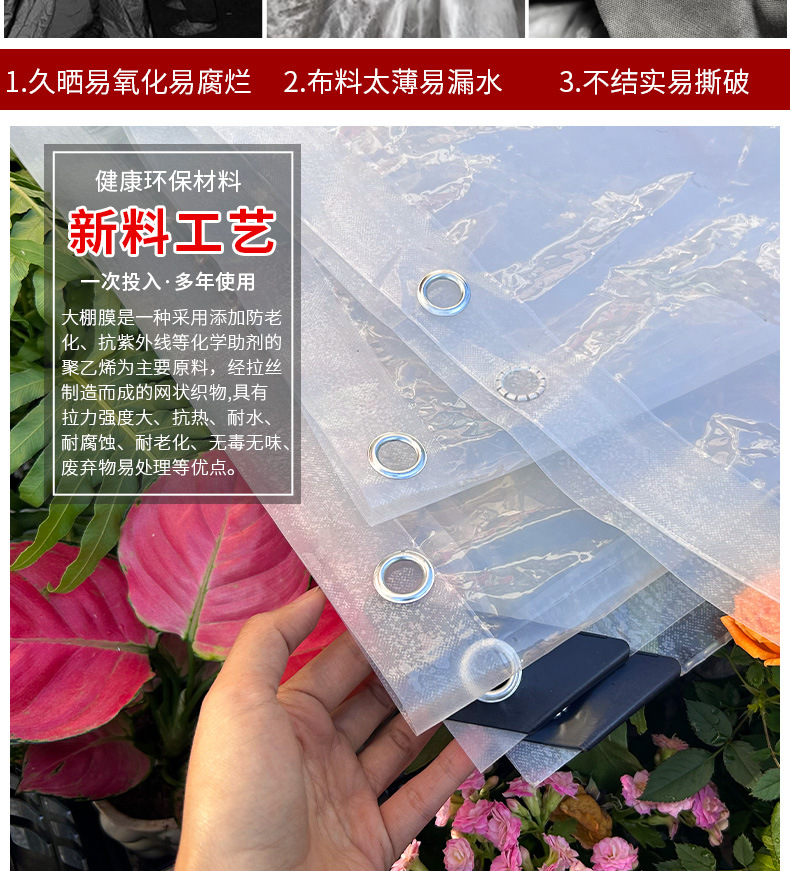 亚马逊爆款多肉透明雨布网格加筋防水布植物防寒塑料布挡风防雨布