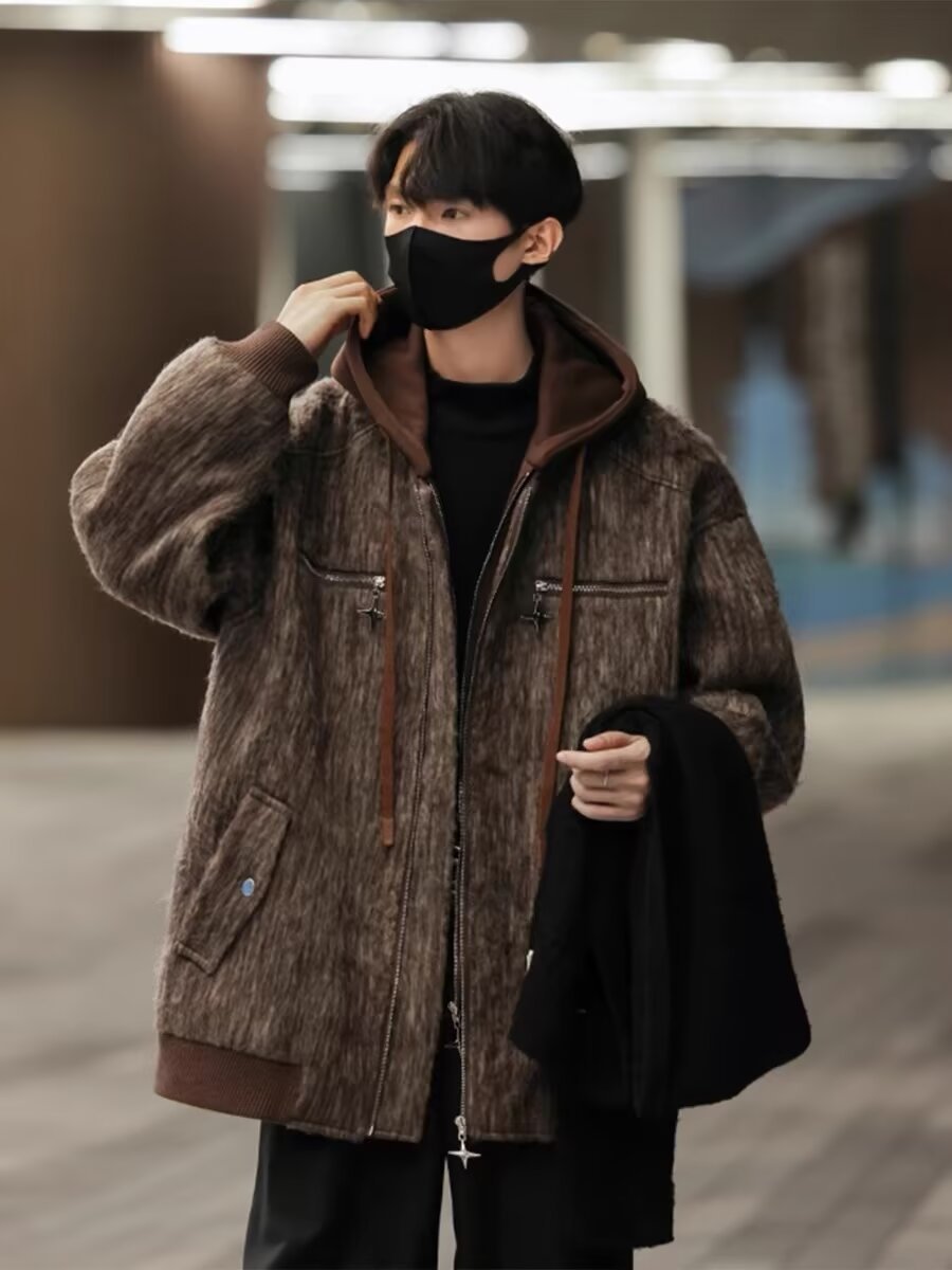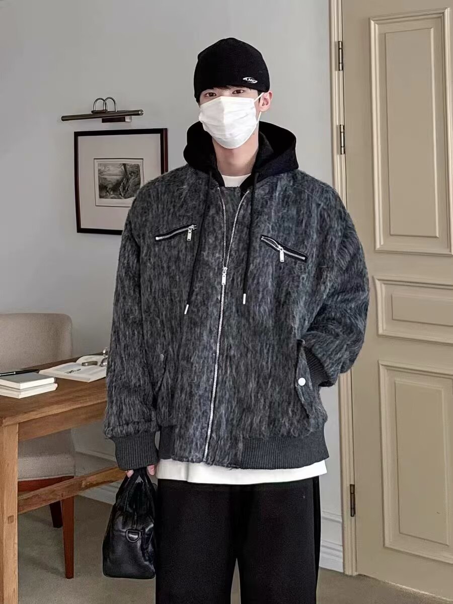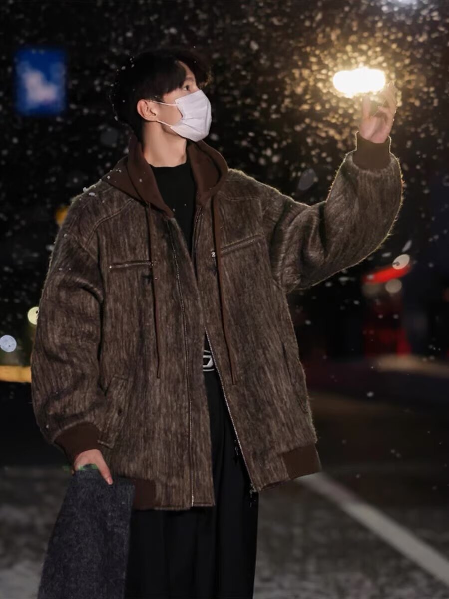 韓国系ジャケット綿服男性冬高級感保温増厚立襟レトロカジュアルパイルコート