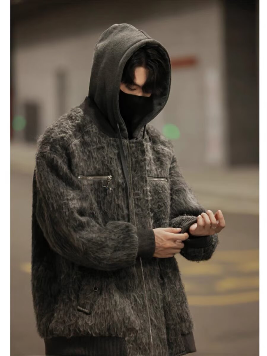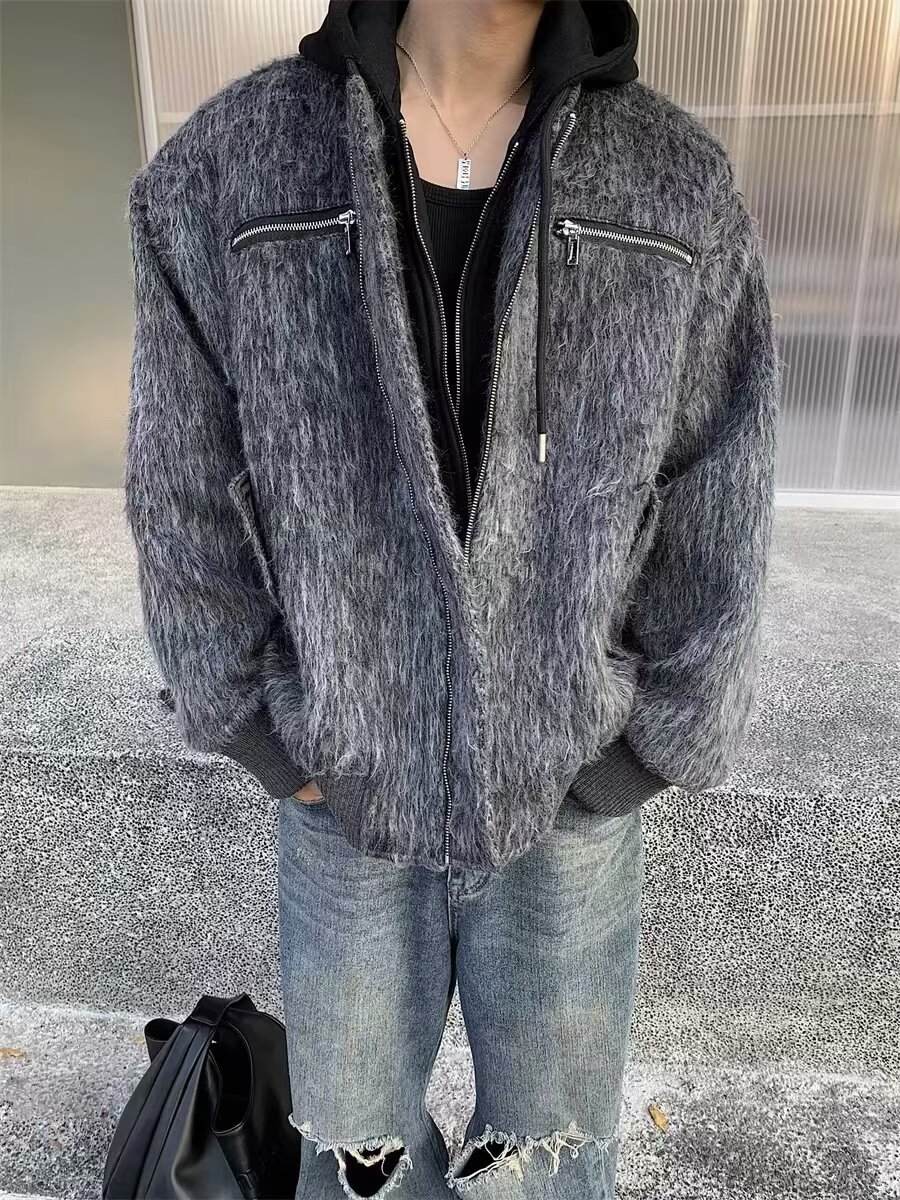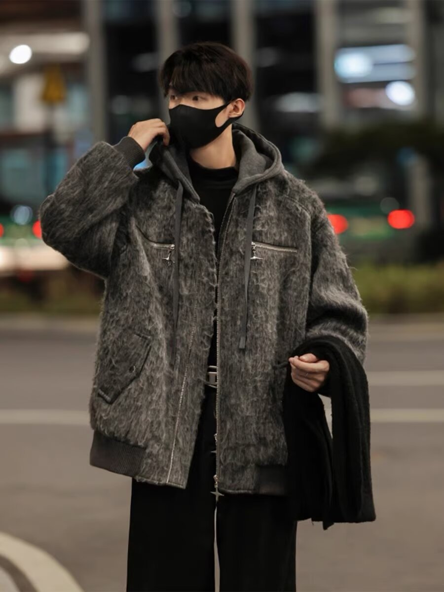 韓国系ジャケット綿服男性冬高級感保温増厚立襟レトロカジュアルパイルコート
