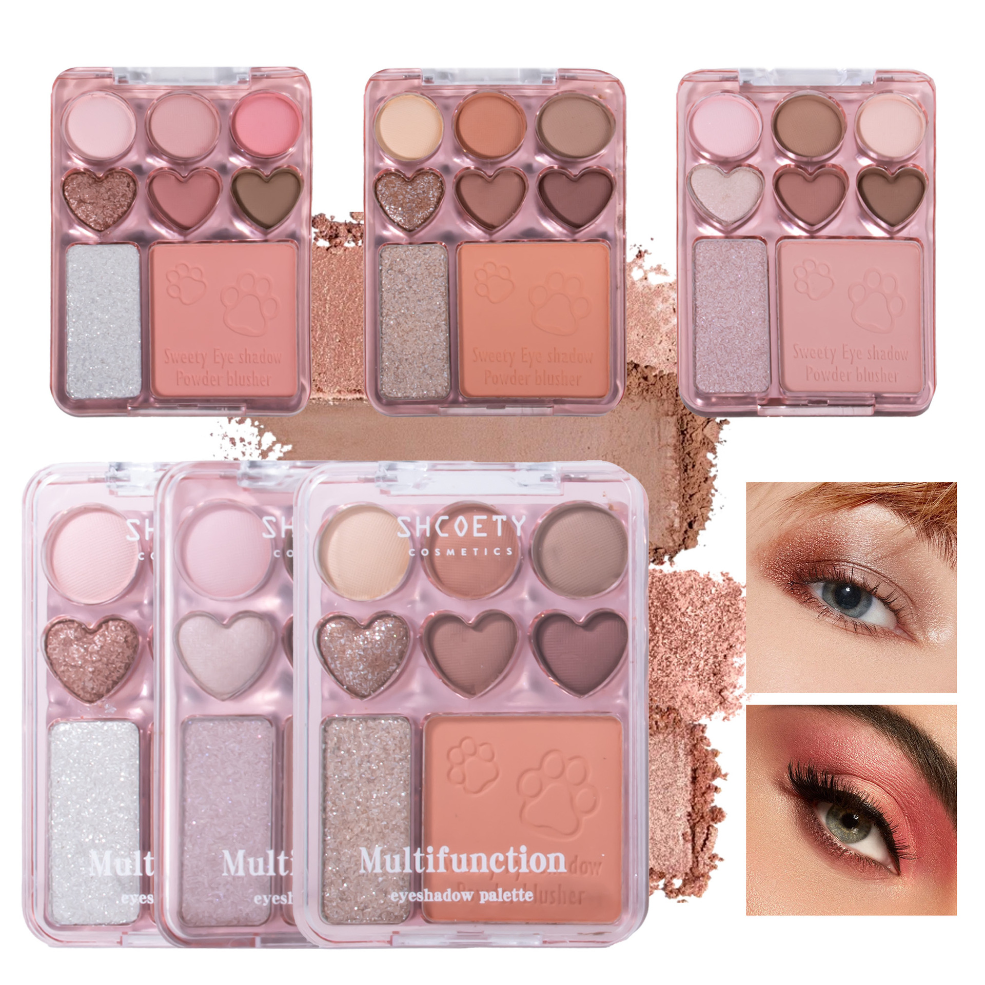 SHCOETY8色ハート型アイシャドウパレット、チーク、ハイライト一体型、防水、長持ち、微ラメアイシャドウ、越境ハートデザイン