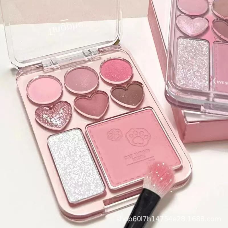 爱心眼影盘腮红高光一体盘焦糖粉棕大地色哑光珠光学生爆款平价女