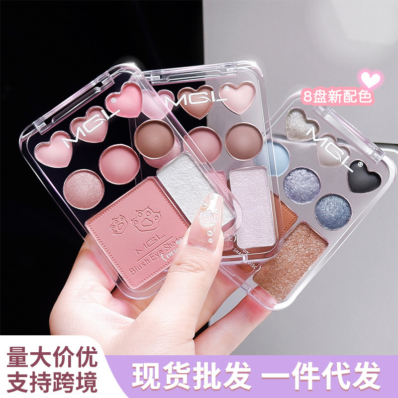 国産8色ラブアイシャドウパレット、チーク、ハイライトオールインワン、ピンク、オレンジ、ピーチ、アースカラー、お手頃価格の学生メイクアップパレット