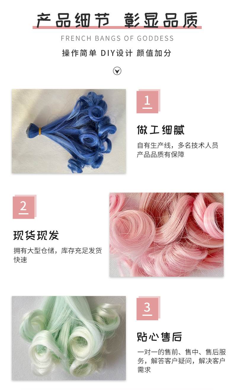 雅楽bjd/sdコットン人形かつら柔らかい糸小さな波巻き髪水波紋髪列純色グラデーション25cm