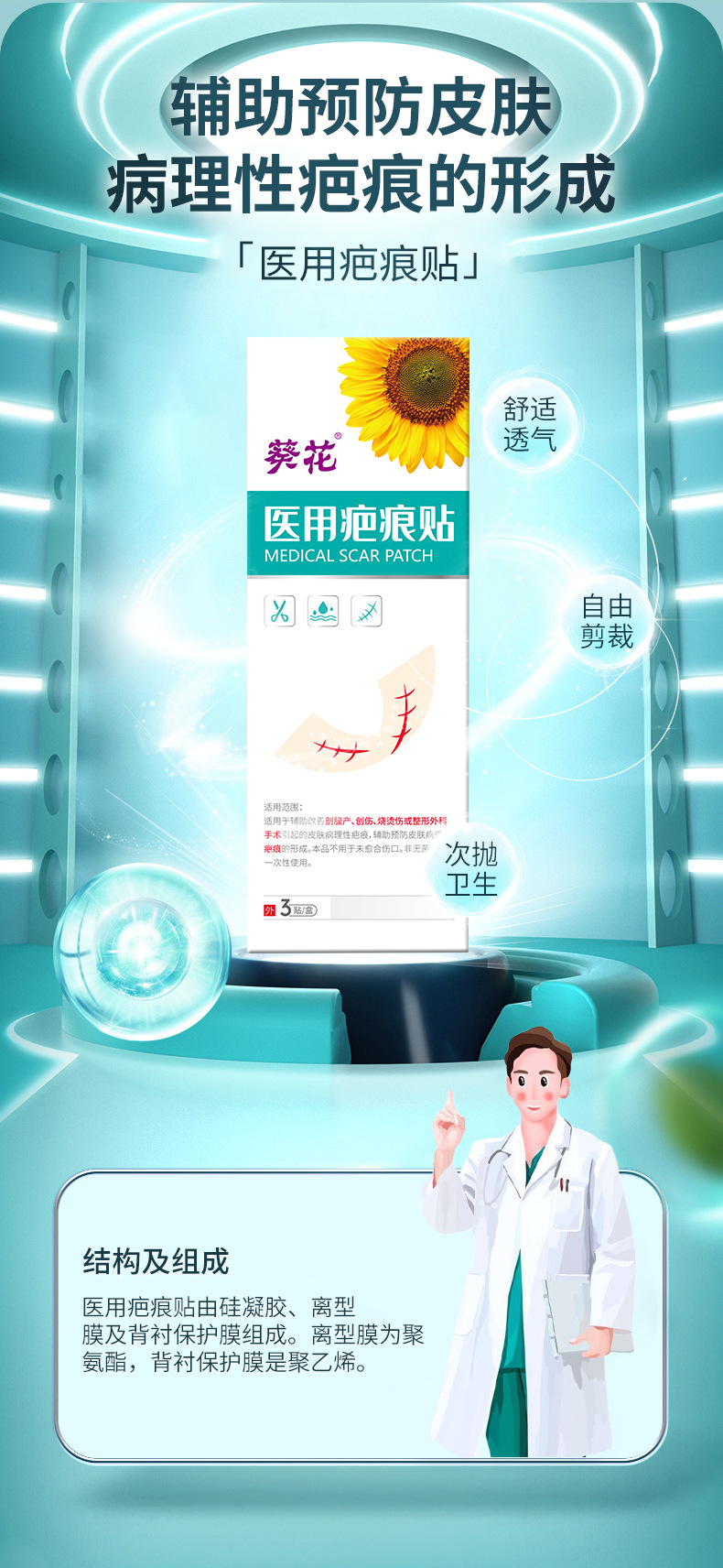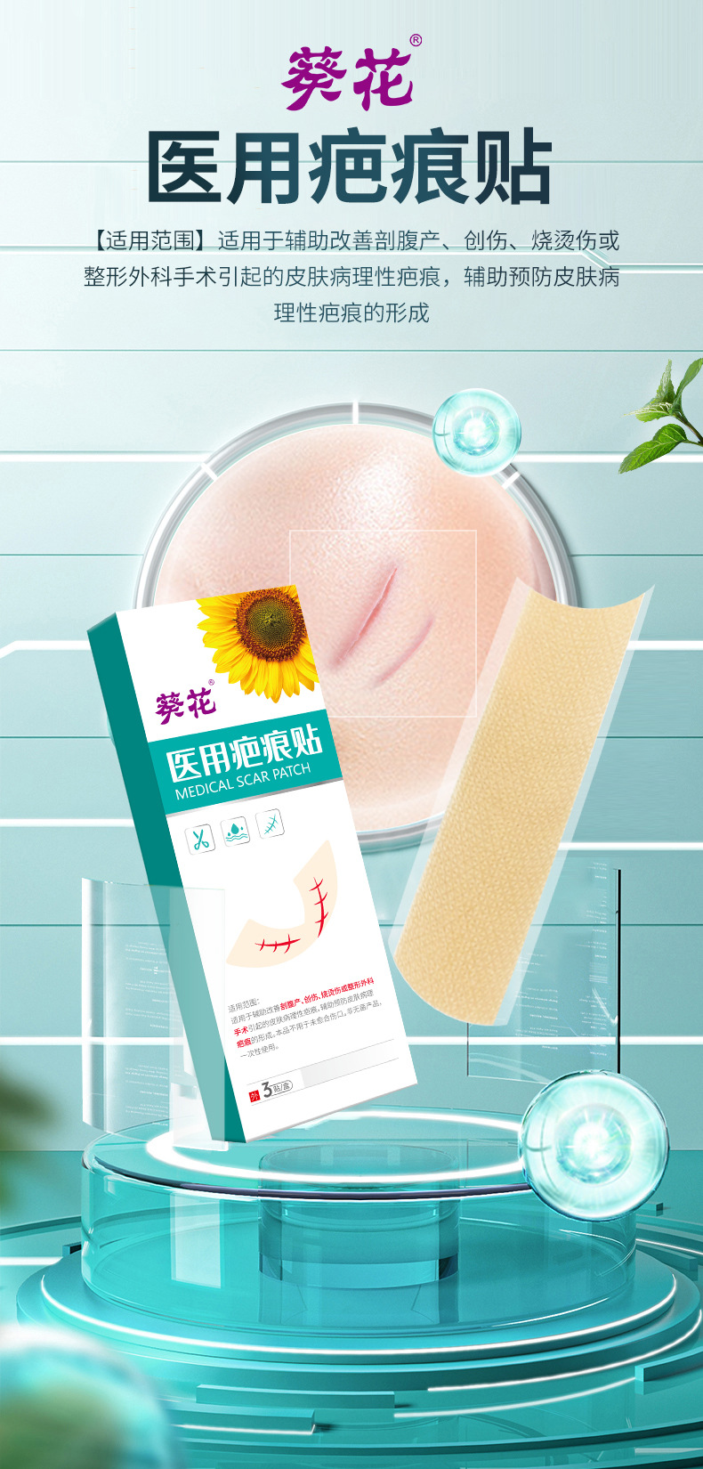 ひまわり医療傷跡パッチ、古い傷跡、傷跡、傷の修復、産後および術後の修復、傷跡を薄める軟膏パッチ