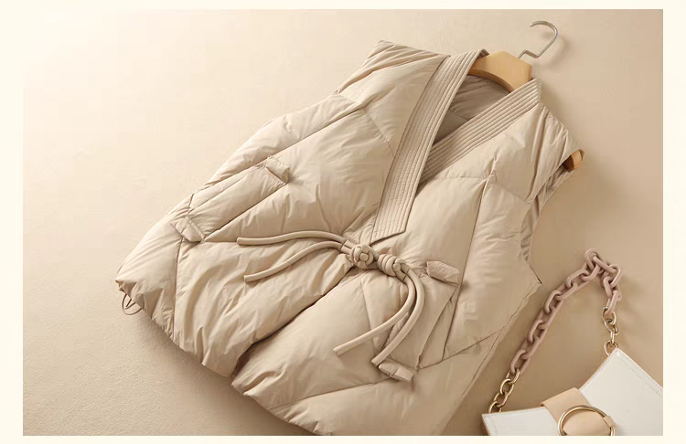 ダウンジャケット馬甲女の短いコートは文芸の手作業を厚くしてvネックヨーロッパ駅2024冬のシンプルな外着をしている
