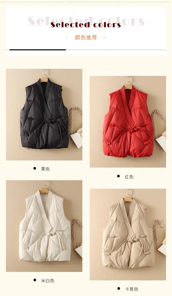 MS*新中式国风羽绒马甲女冬新款过年提花背心坎肩鹅绒新年红色马
