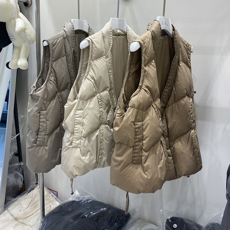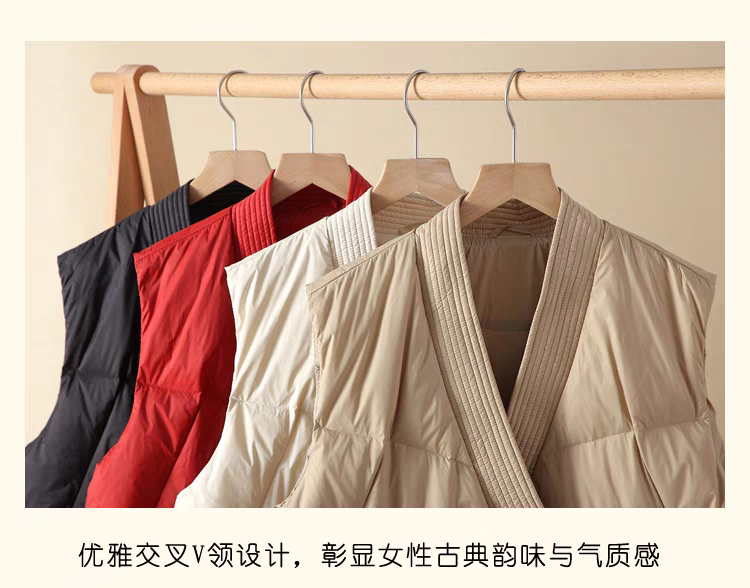 平湖驰新90绒羽绒马甲女秋冬季新款v领国风盘扣休闲背心坎肩外套