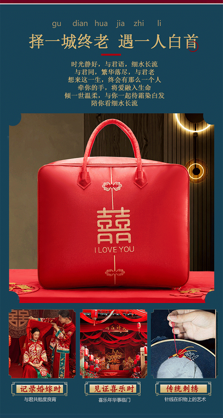 结婚布団喜袋洋服収纳バッグ荷物袋大容量引っ越し袋旅行バッグ赤结婚式